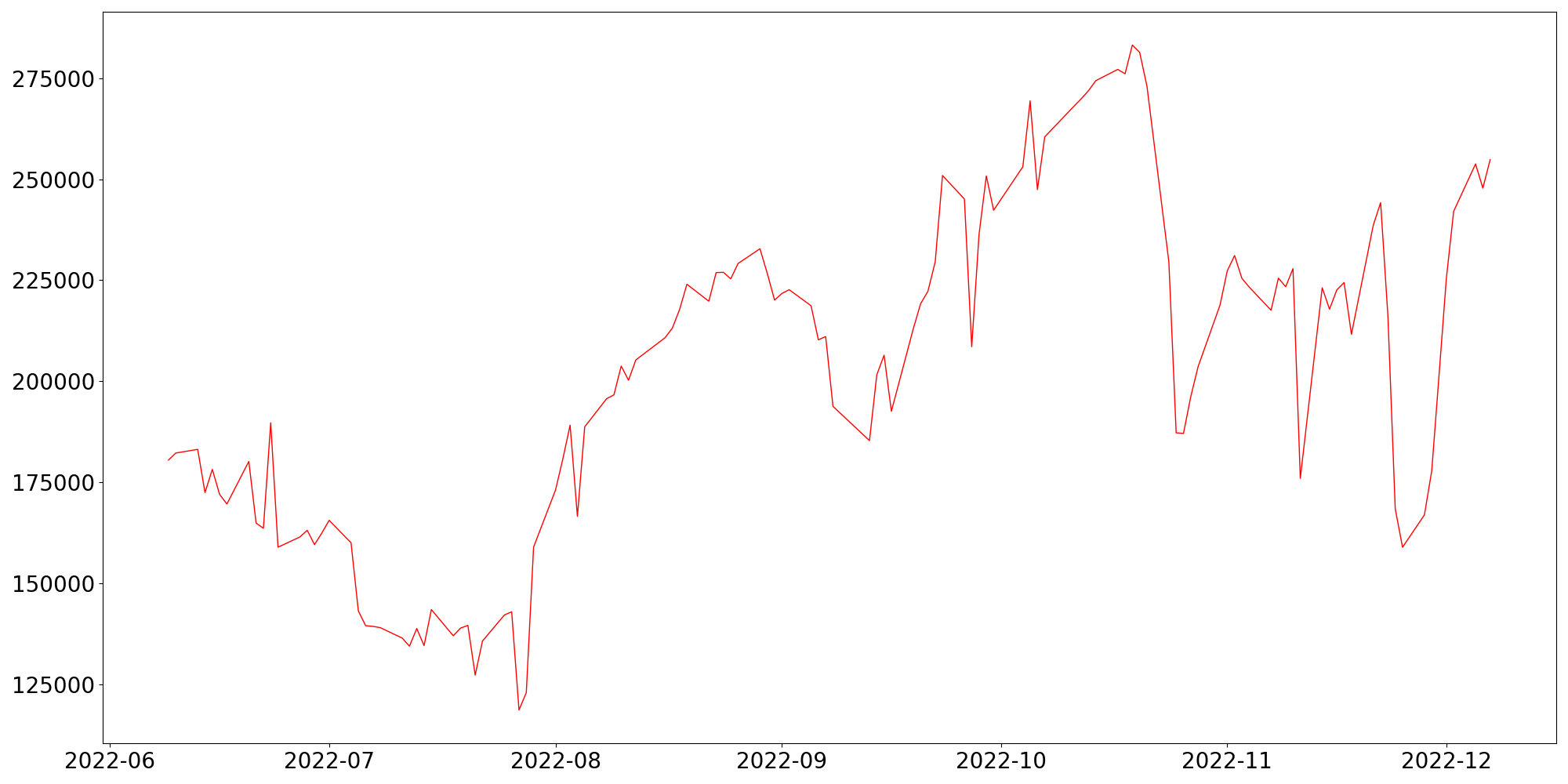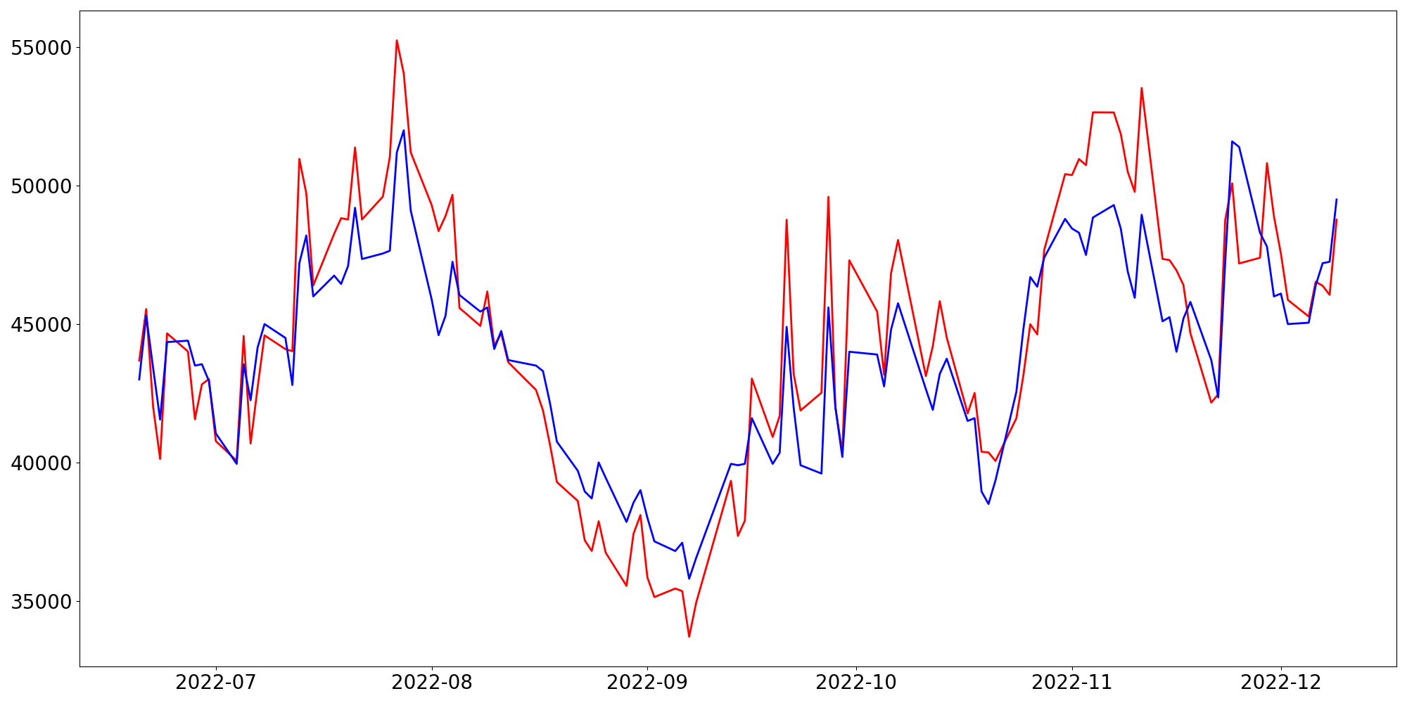 [ - : 실제값(종가) / - : 예측값(종가) ]