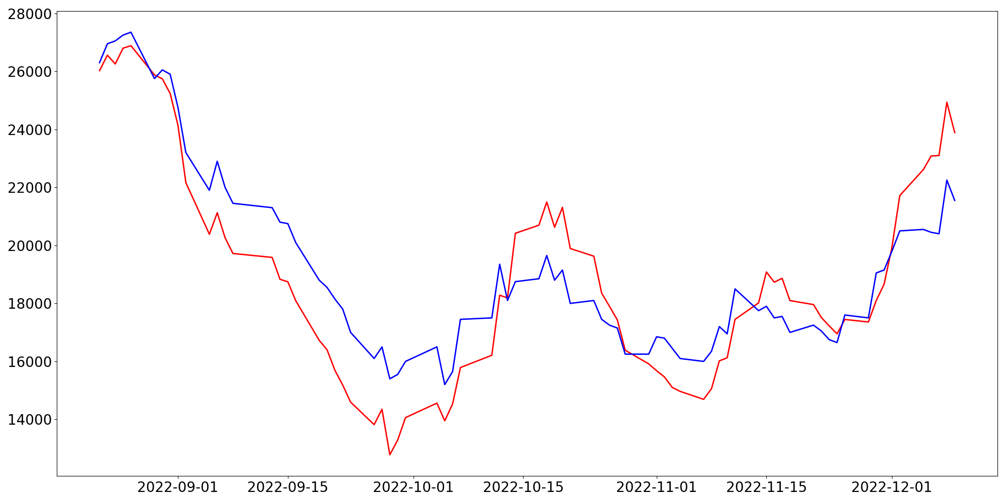 [ - : 실제값(종가) / - : 예측값(종가) ]