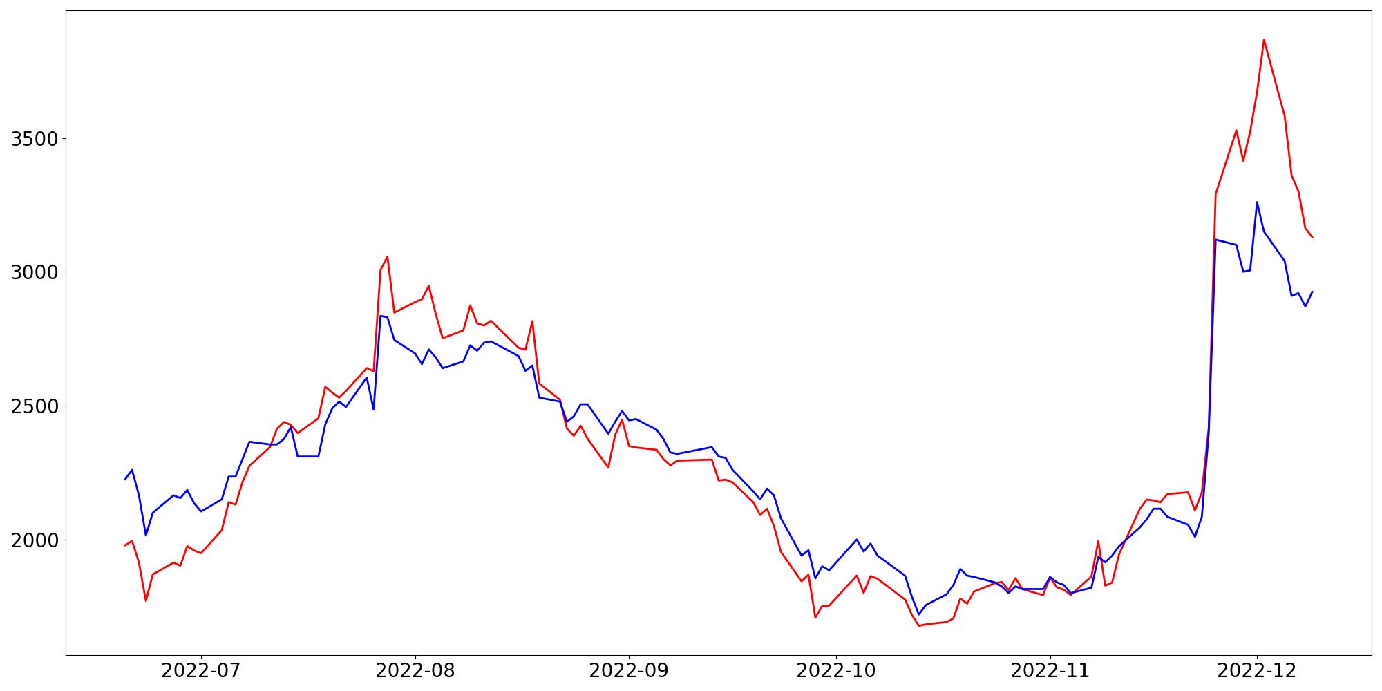 [ - : 실제값(종가) / - : 예측값(종가) ]