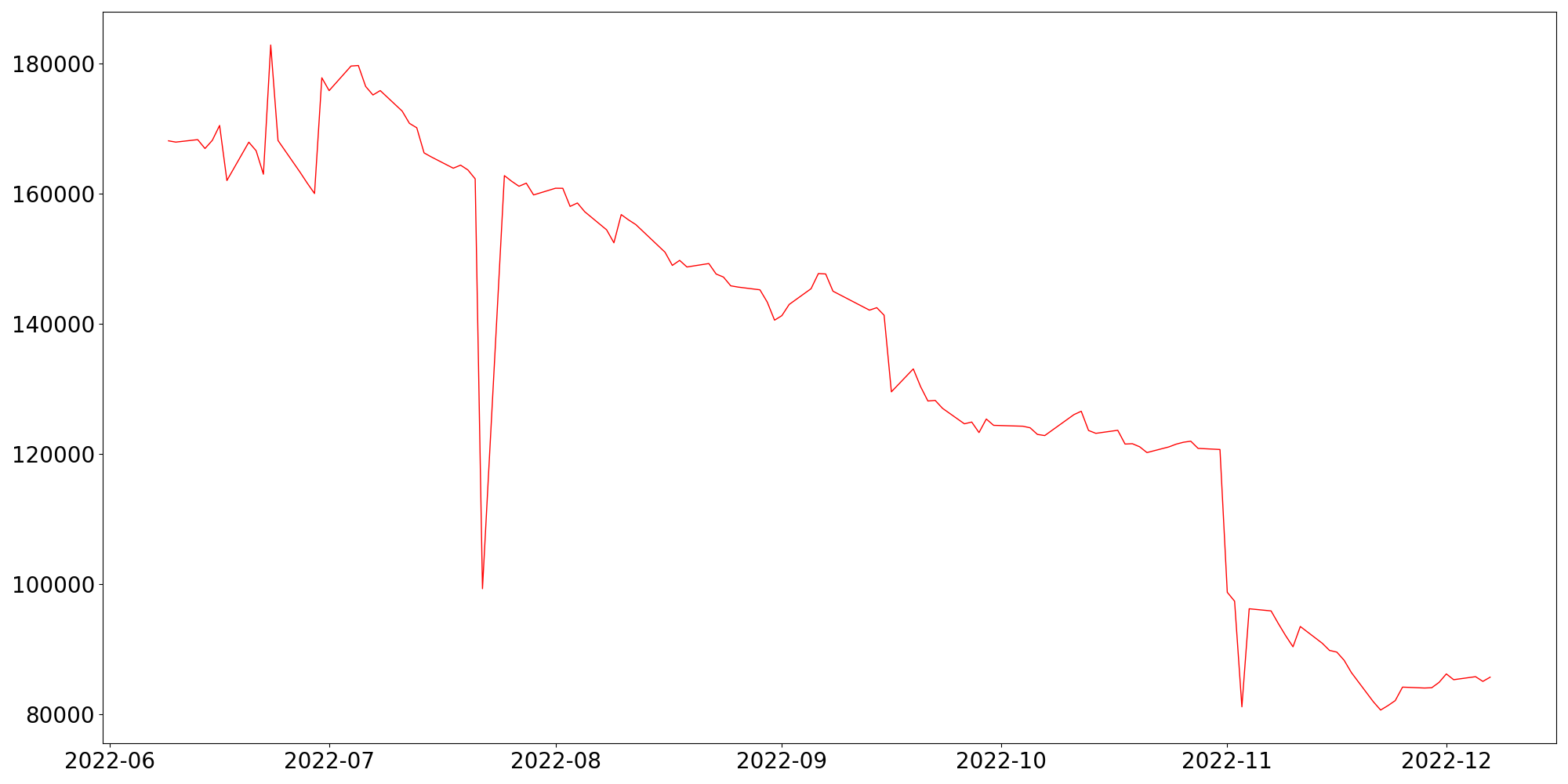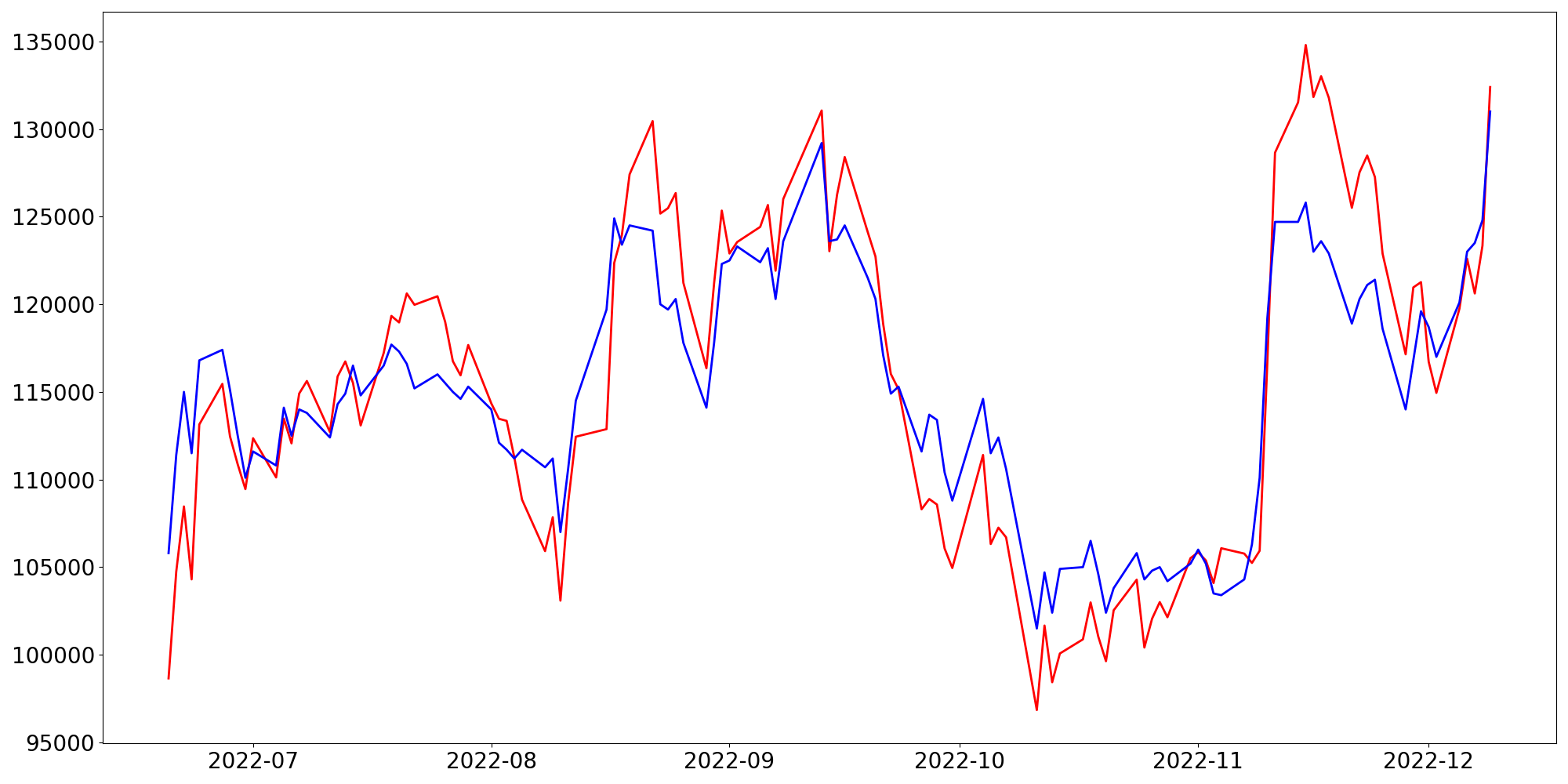 [ - : 실제값(종가) / - : 예측값(종가) ]