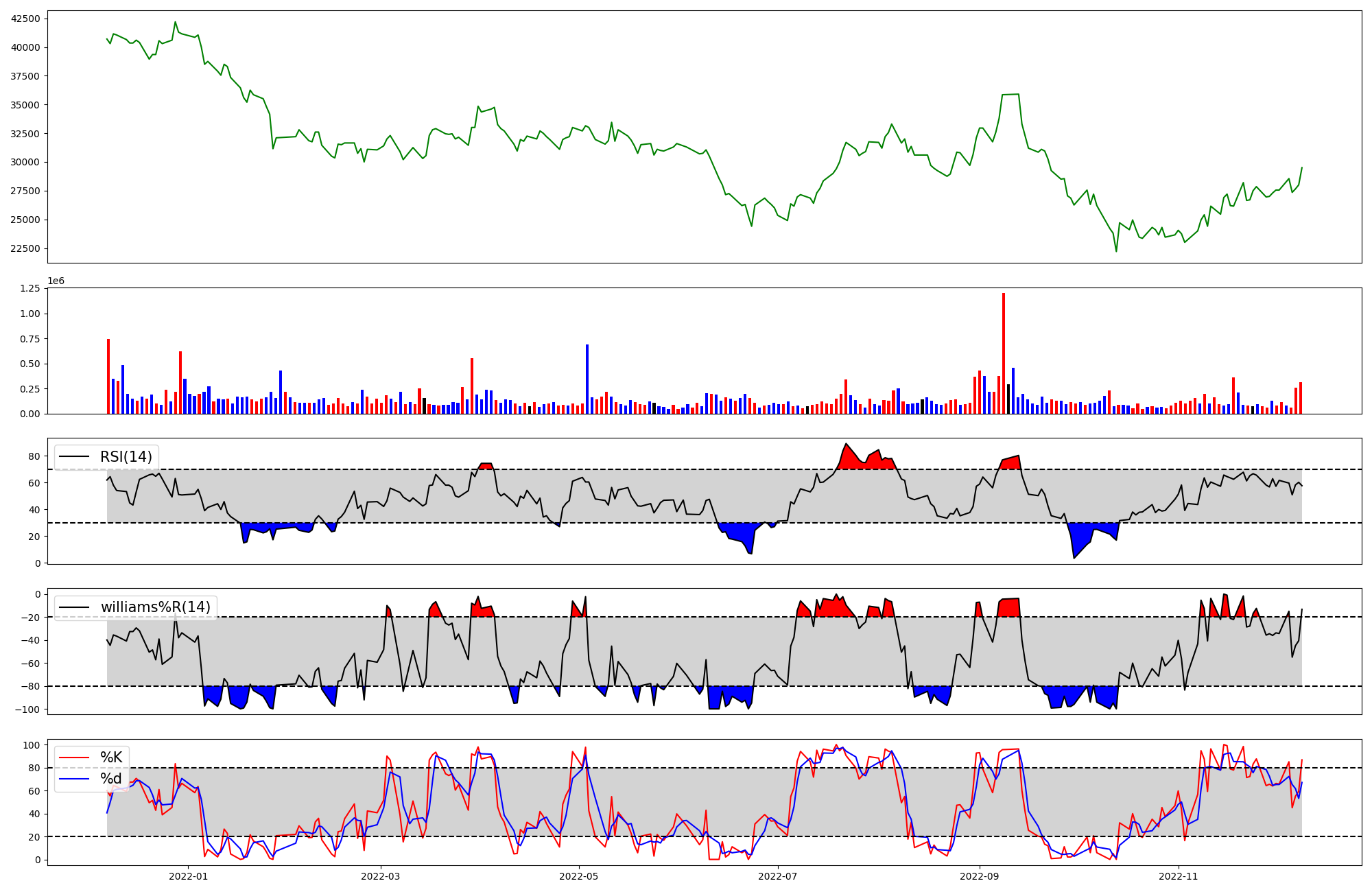 RSI | Williams %R | stochastic(%K) | |