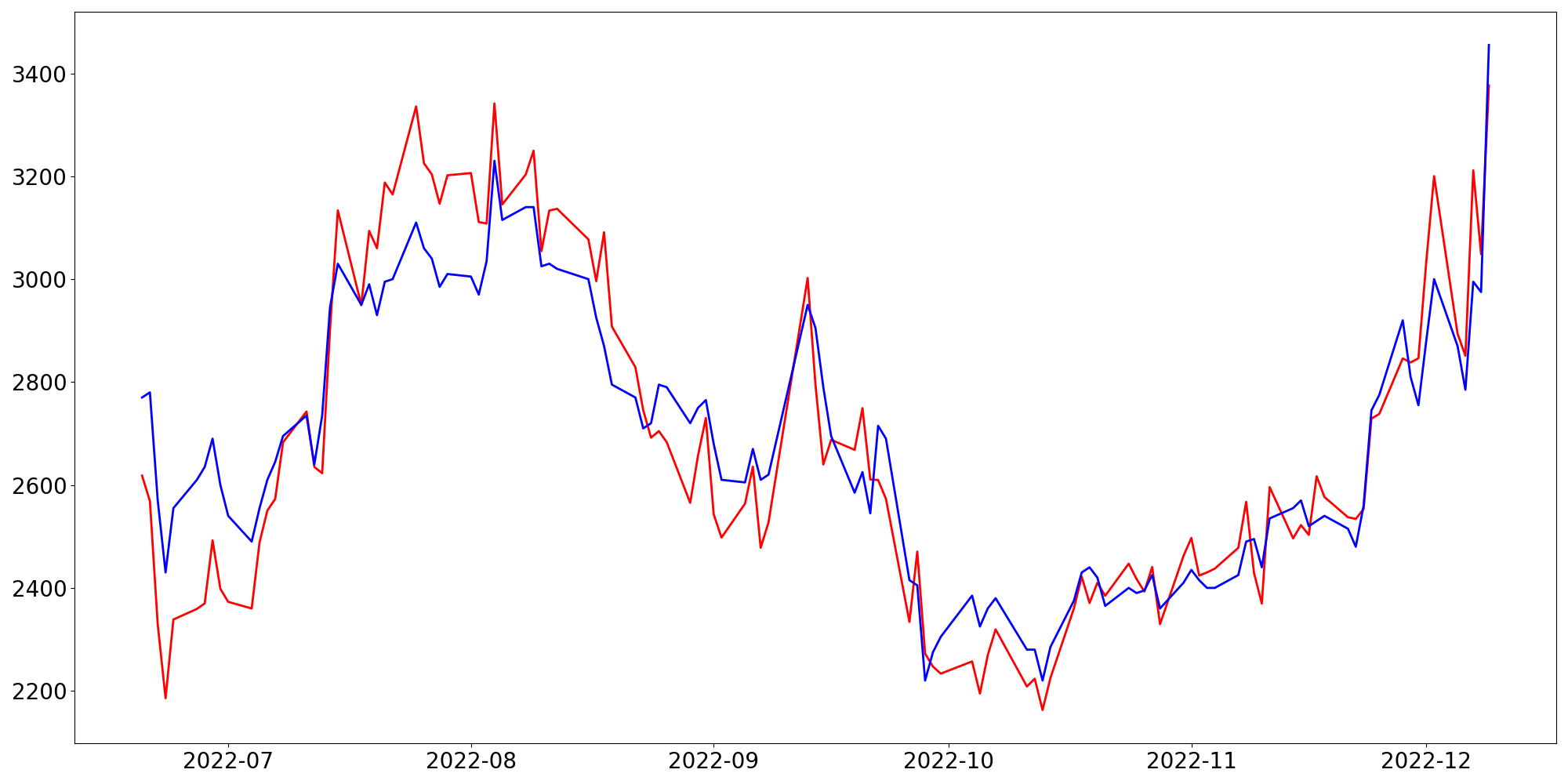 [ - : 실제값(종가) / - : 예측값(종가) ]