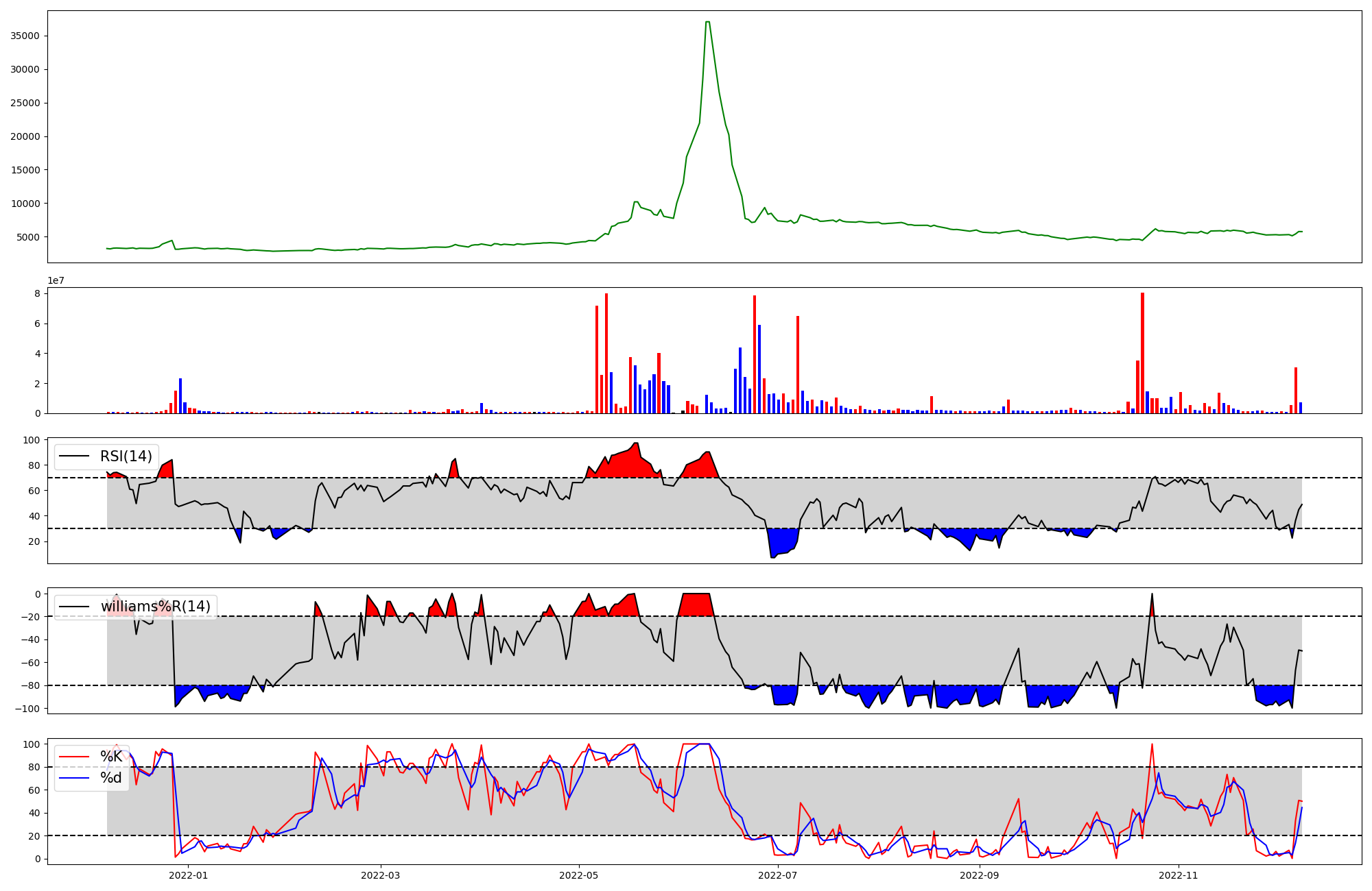RSI | Williams %R | stochastic(%K) | |