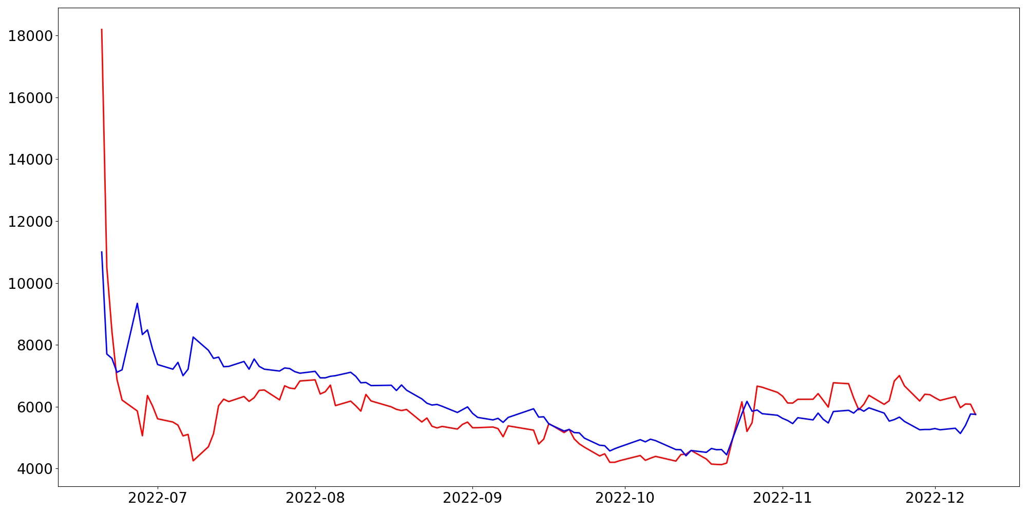 [ - : 실제값(종가) / - : 예측값(종가) ]