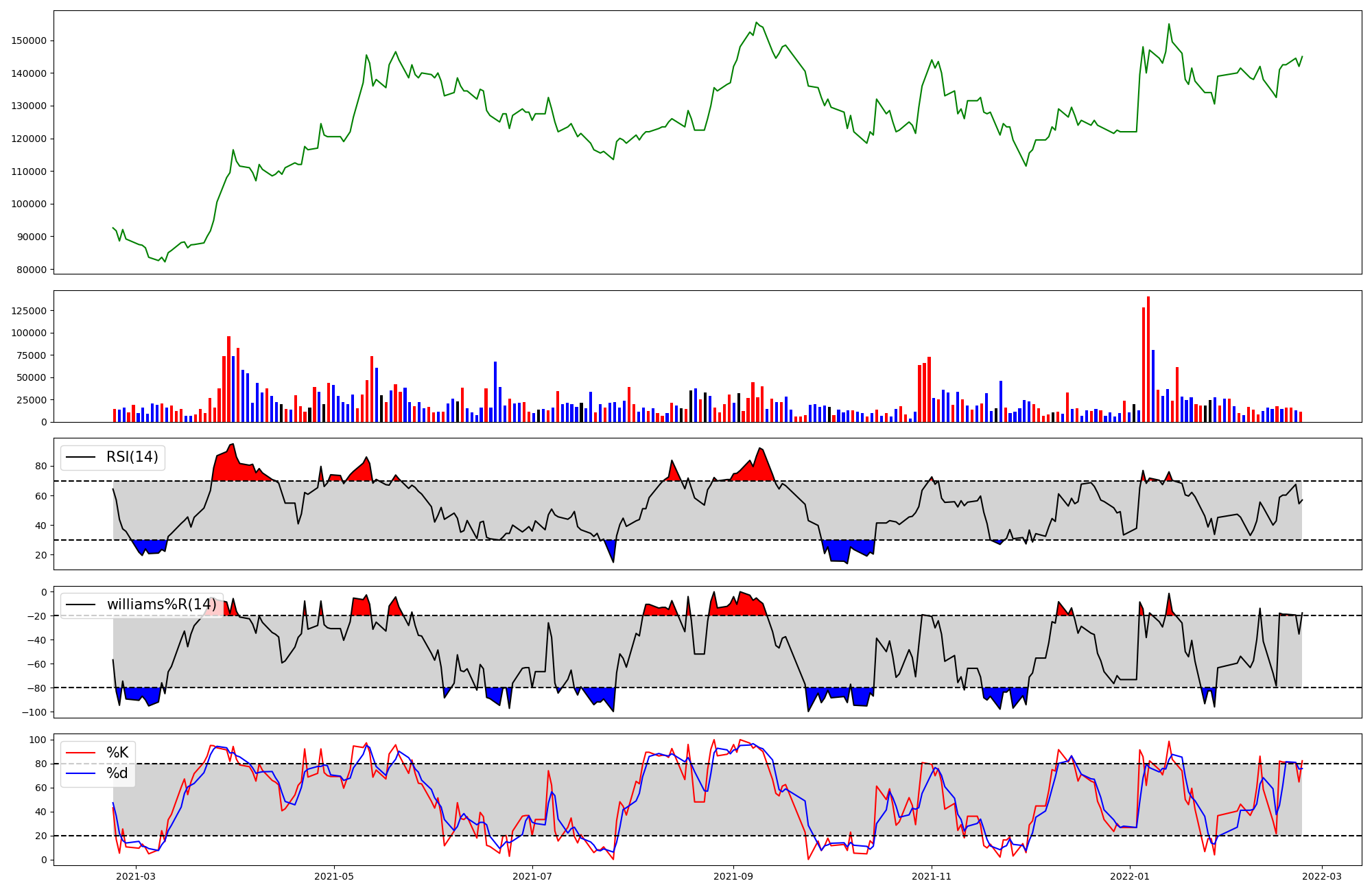 | RSI | Williams %R | stochastic(%K) | |