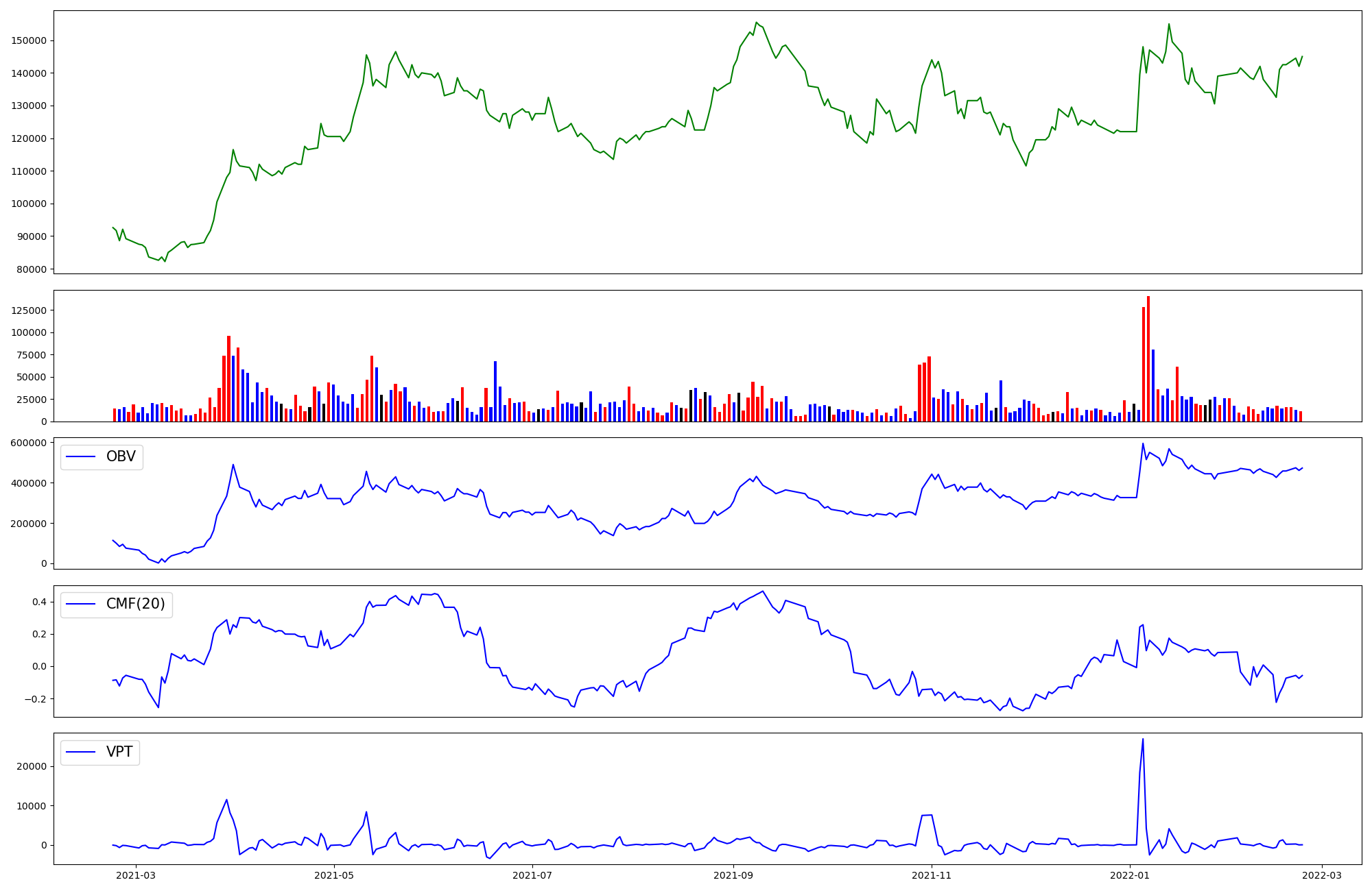 | OBV | CMF | VPT | |