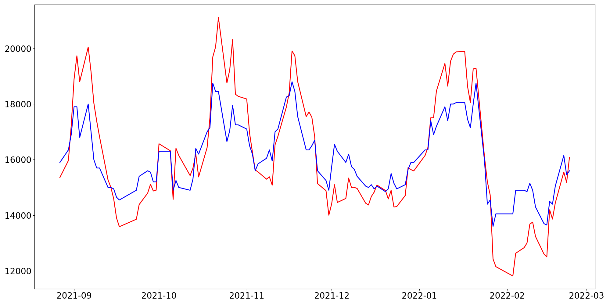 [ - : 실제값(종가) / - : 예측값(종가) ]