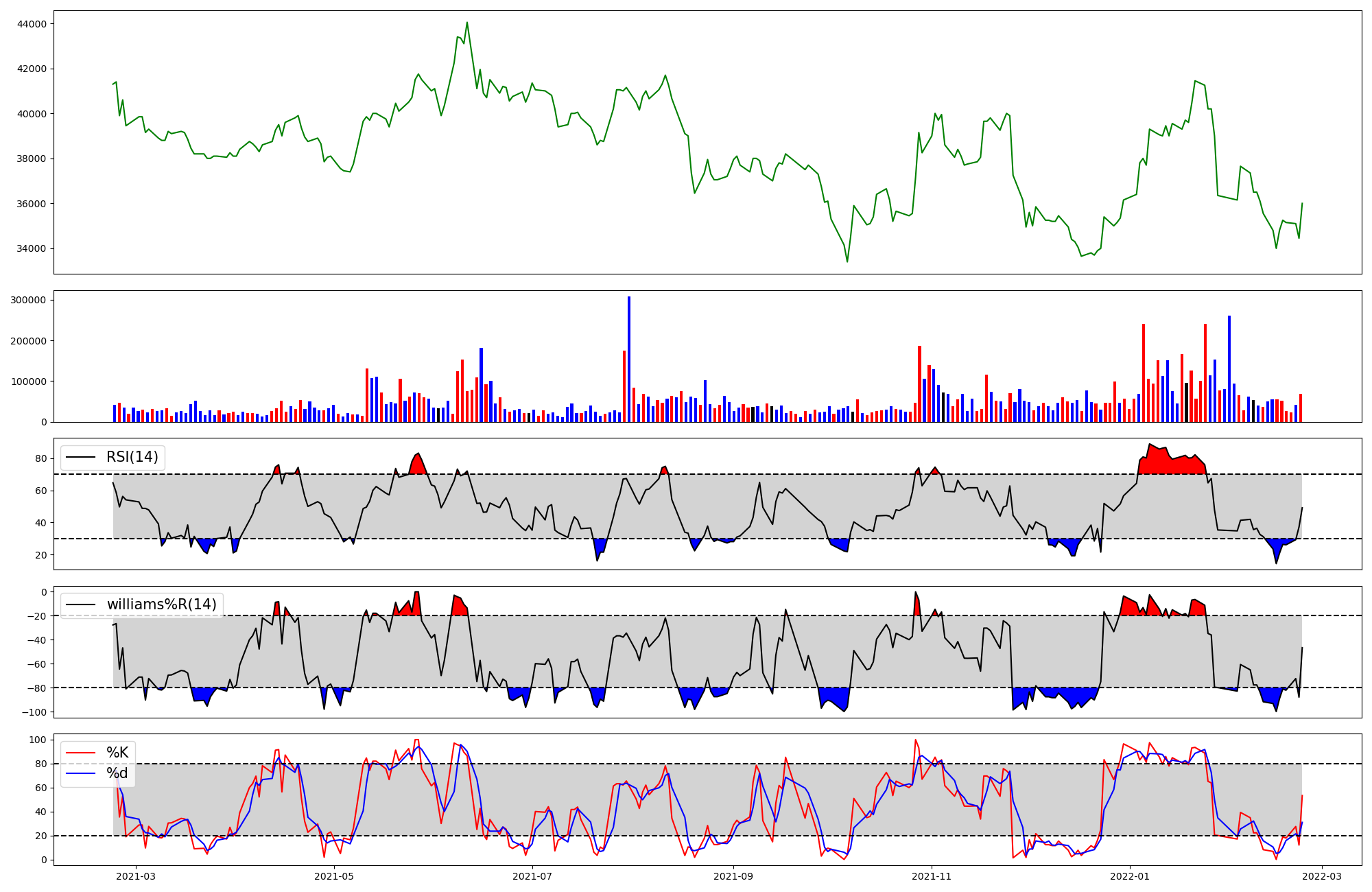 | RSI | Williams %R | stochastic(%K) | |