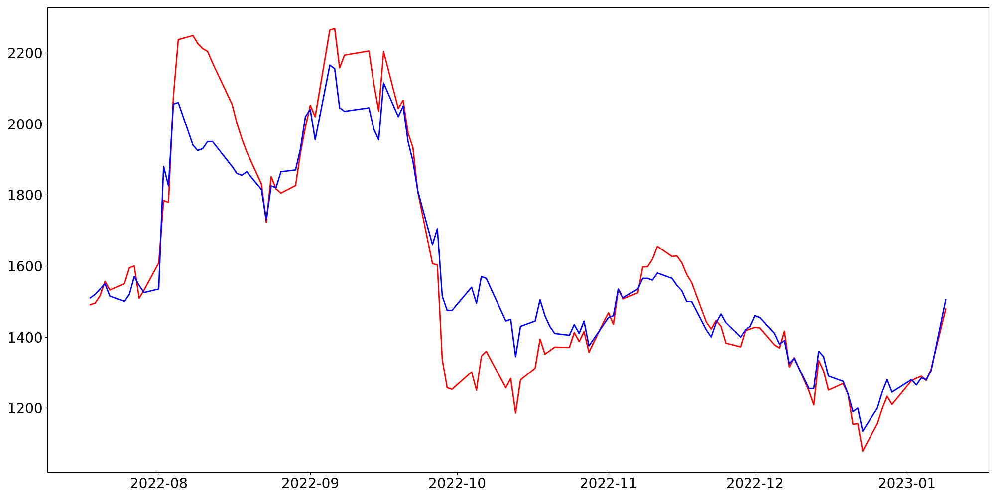 [ - : 실제값(종가) / - : 예측값(종가) ]