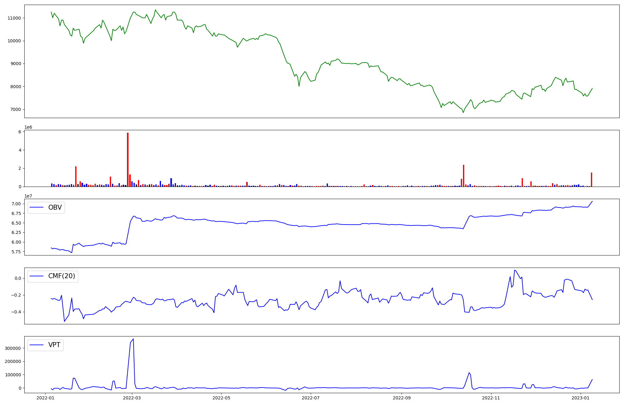 | OBV | CMF | VPT | |
