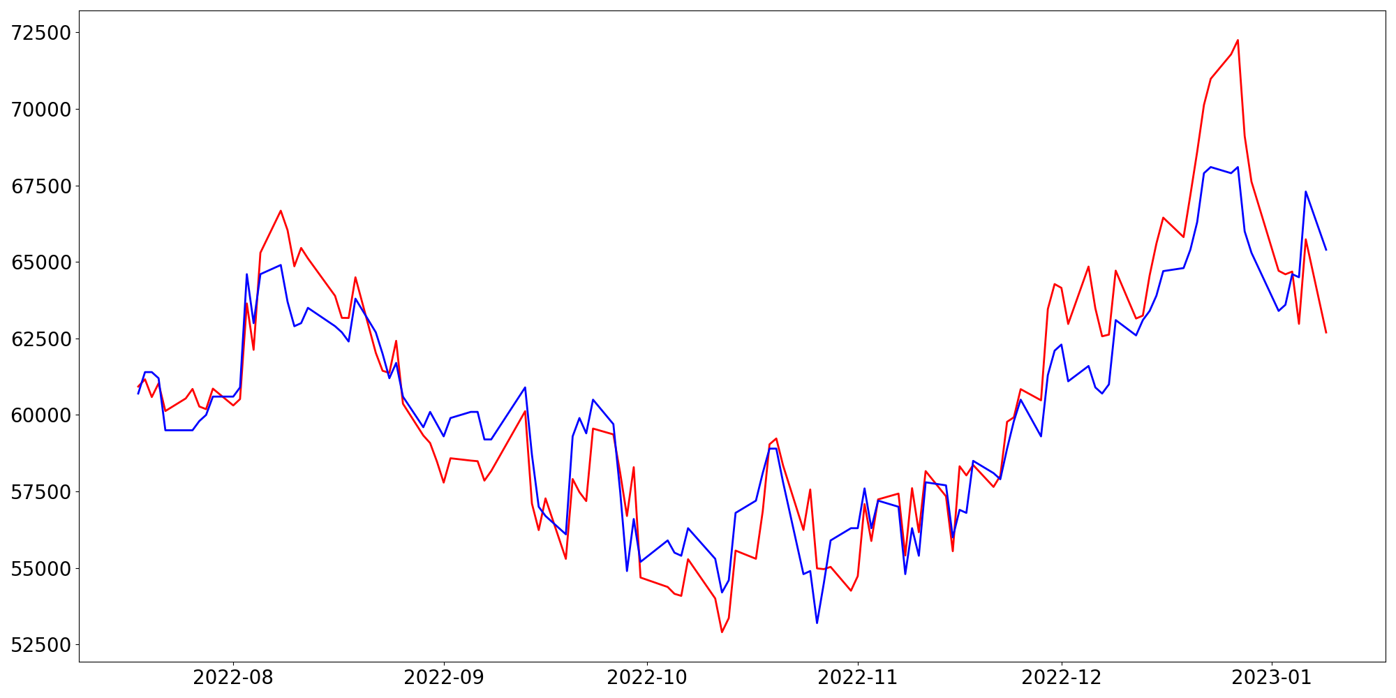 [ - : 실제값(종가) / - : 예측값(종가) ]
