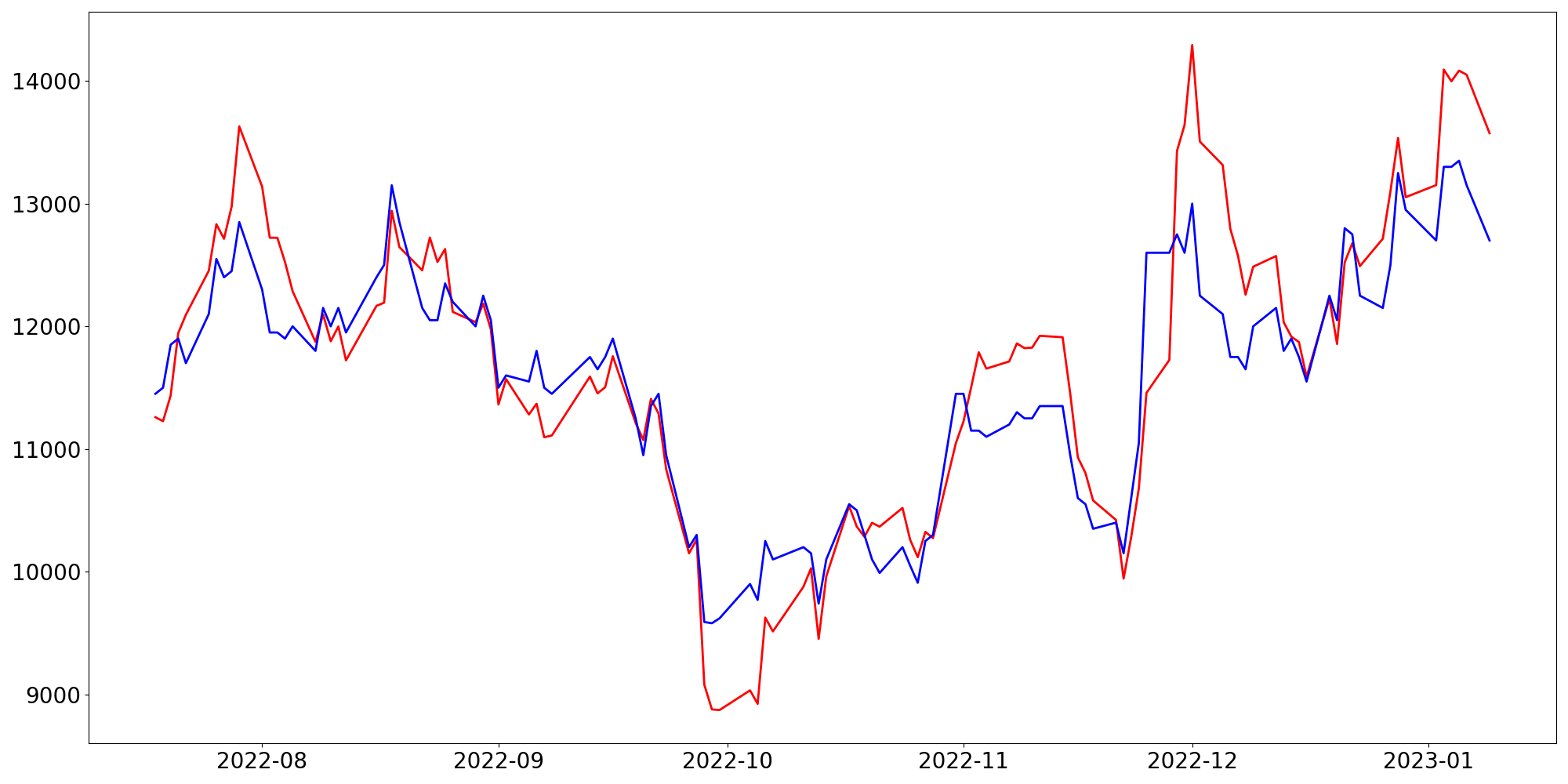 [ - : 실제값(종가) / - : 예측값(종가) ]