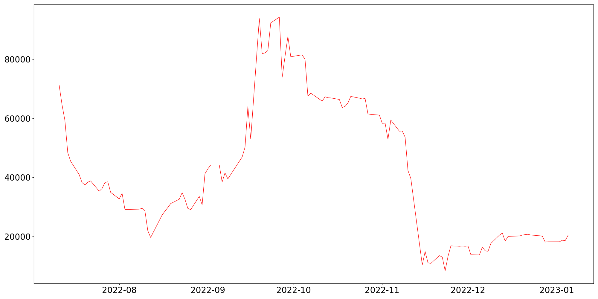 [ - : 실제값(종가) / - : 예측값(종가) ]