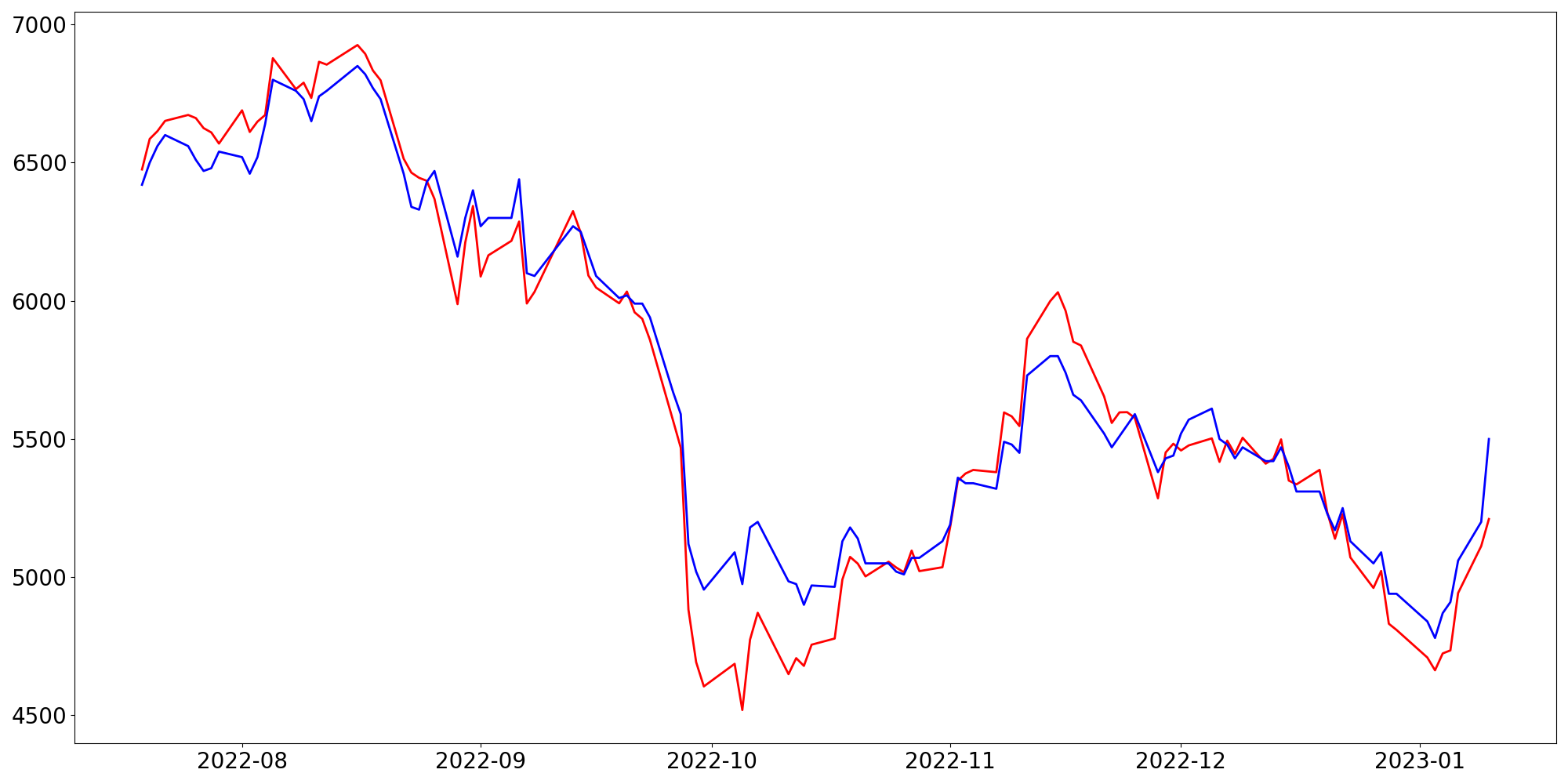 [ - : 실제값(종가) / - : 예측값(종가) ]
