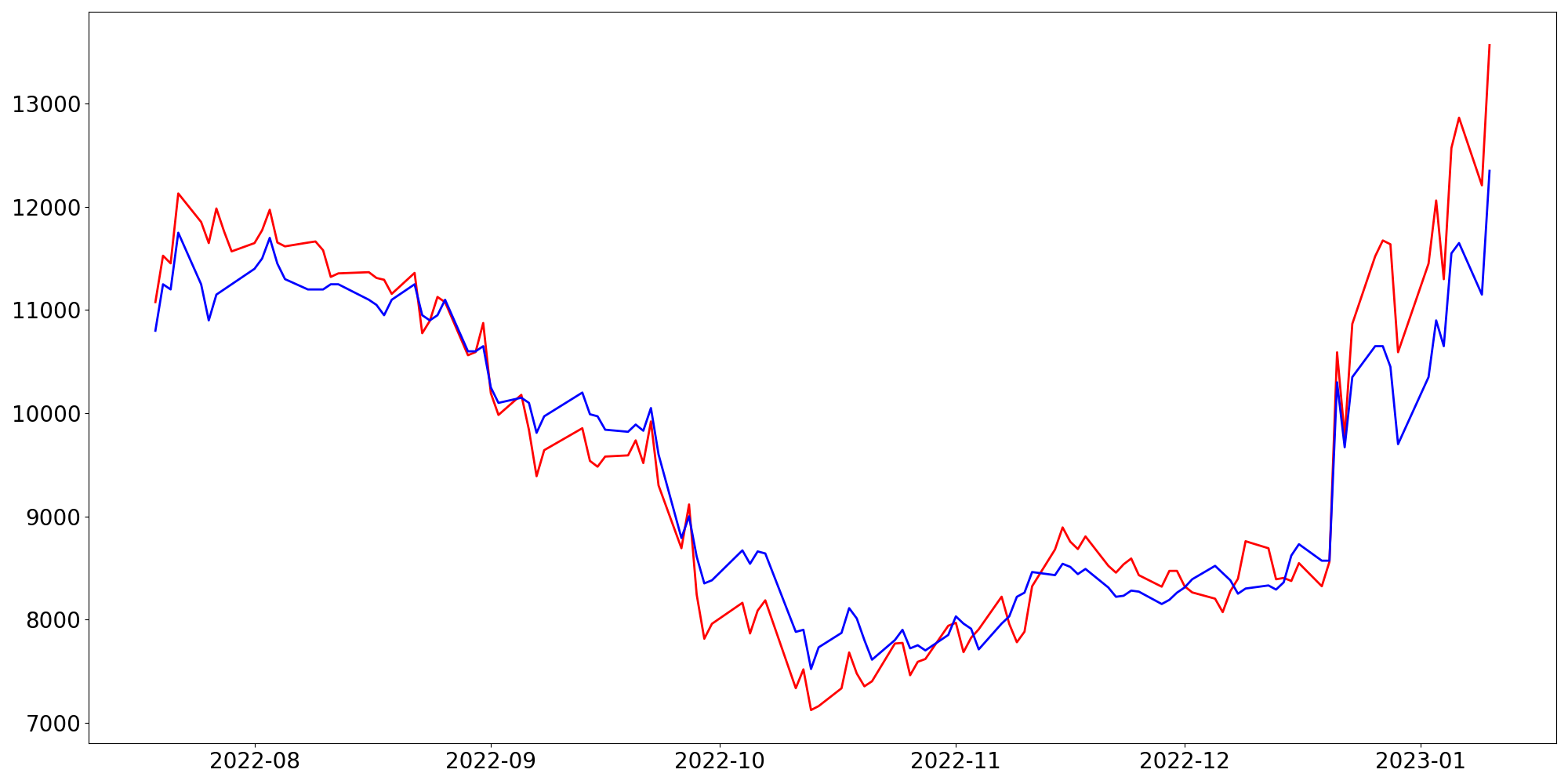 [ - : 실제값(종가) / - : 예측값(종가) ]