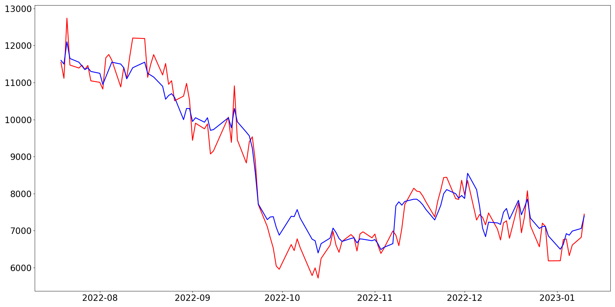 [ - : 실제값(종가) / - : 예측값(종가) ]