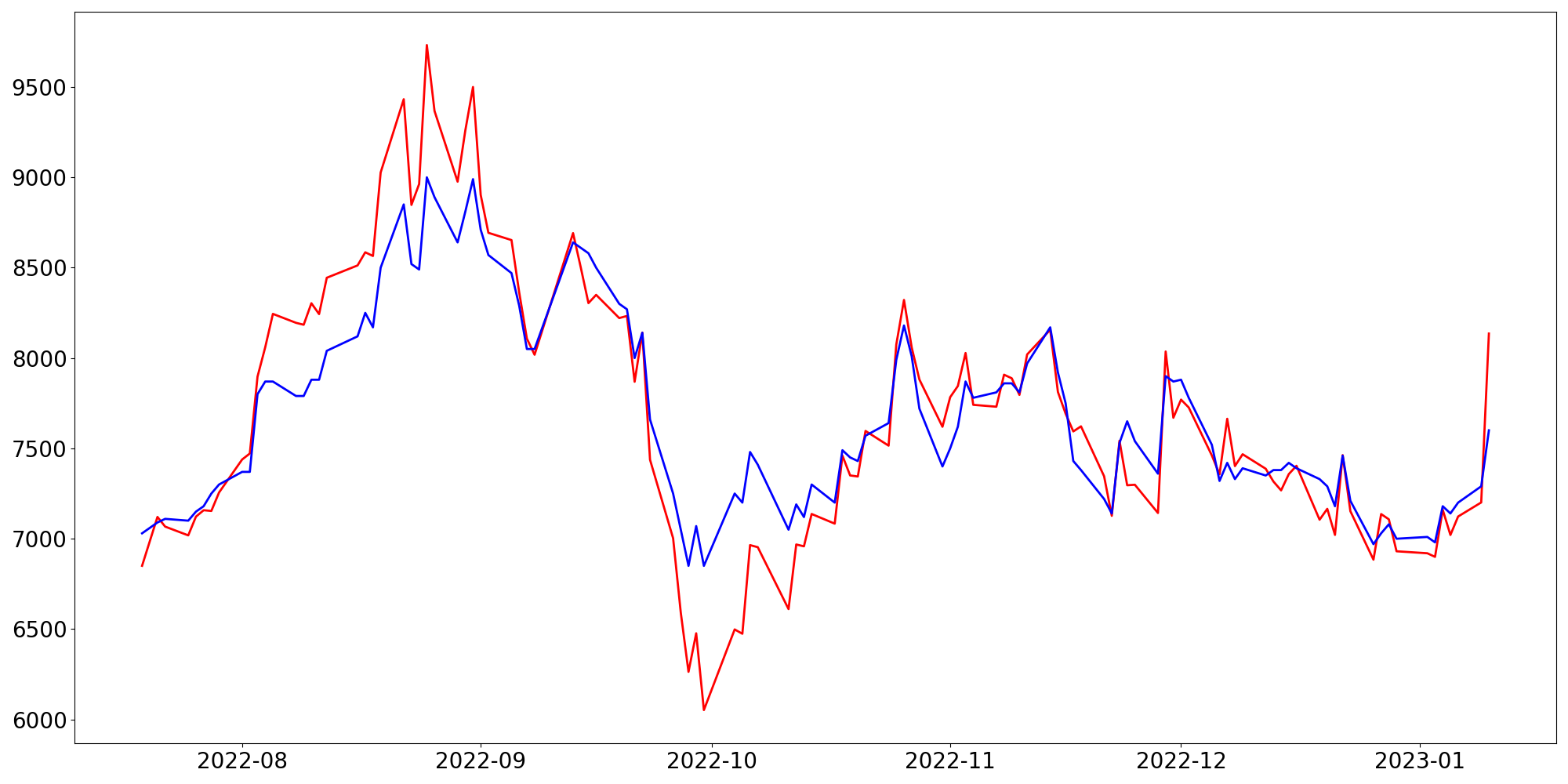 [ - : 실제값(종가) / - : 예측값(종가) ]