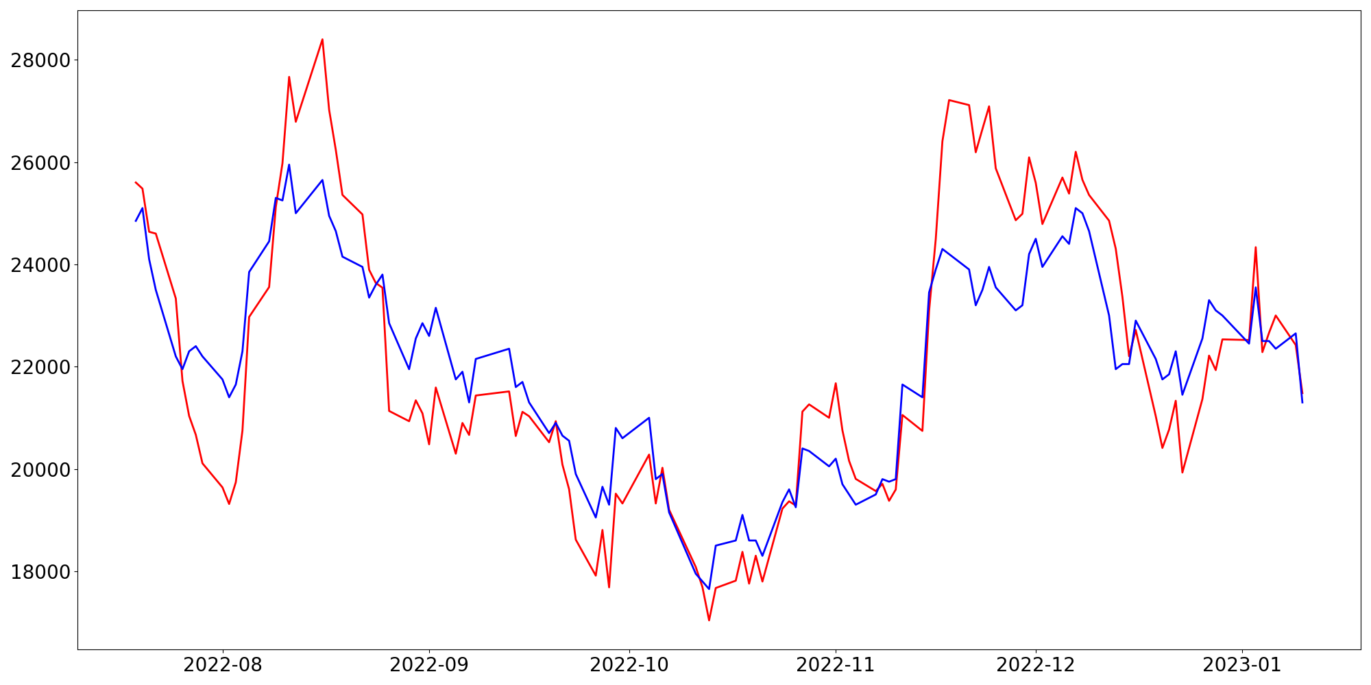 [ - : 실제값(종가) / - : 예측값(종가) ]