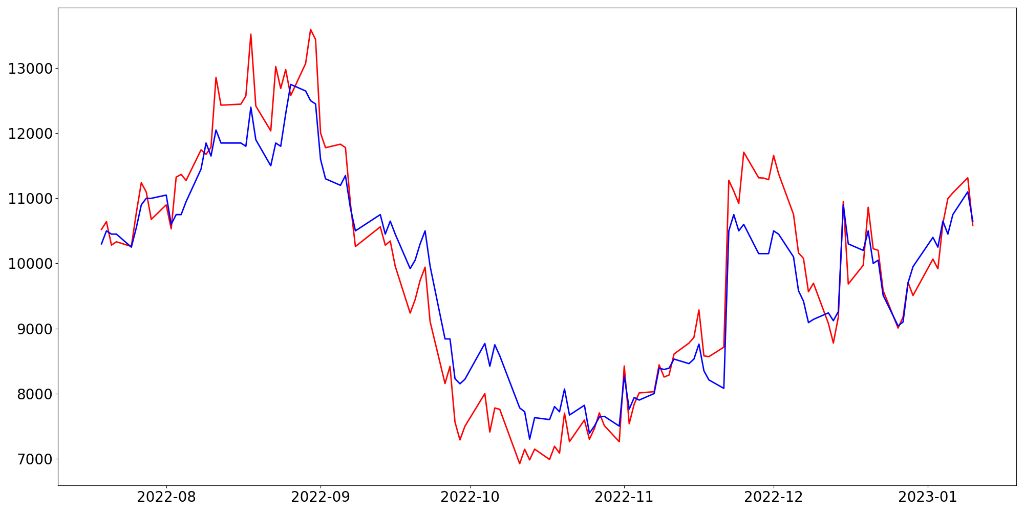 [ - : 실제값(종가) / - : 예측값(종가) ]