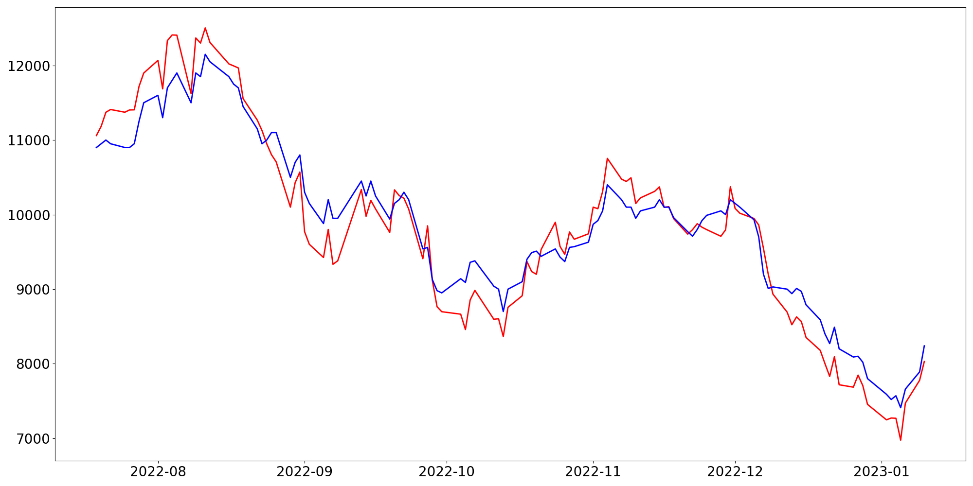 [ - : 실제값(종가) / - : 예측값(종가) ]