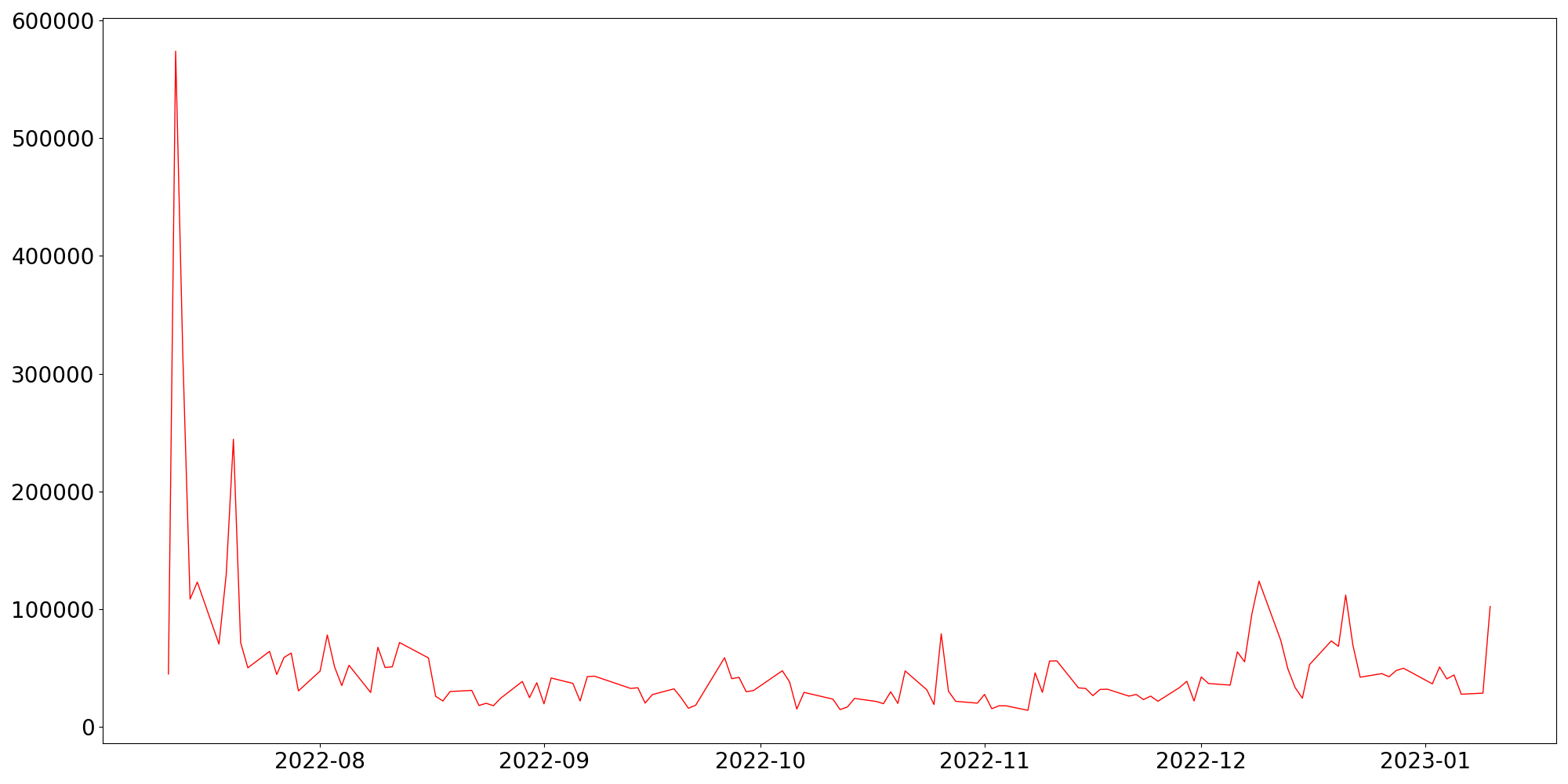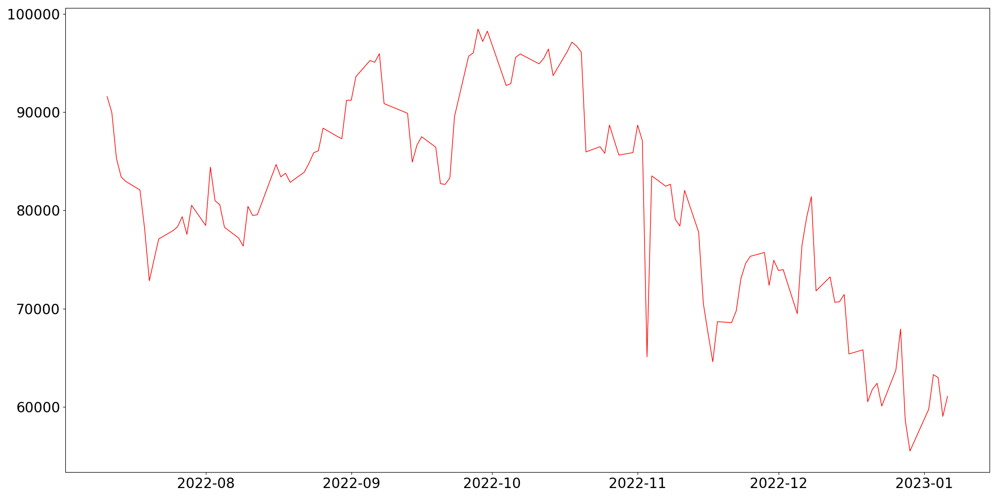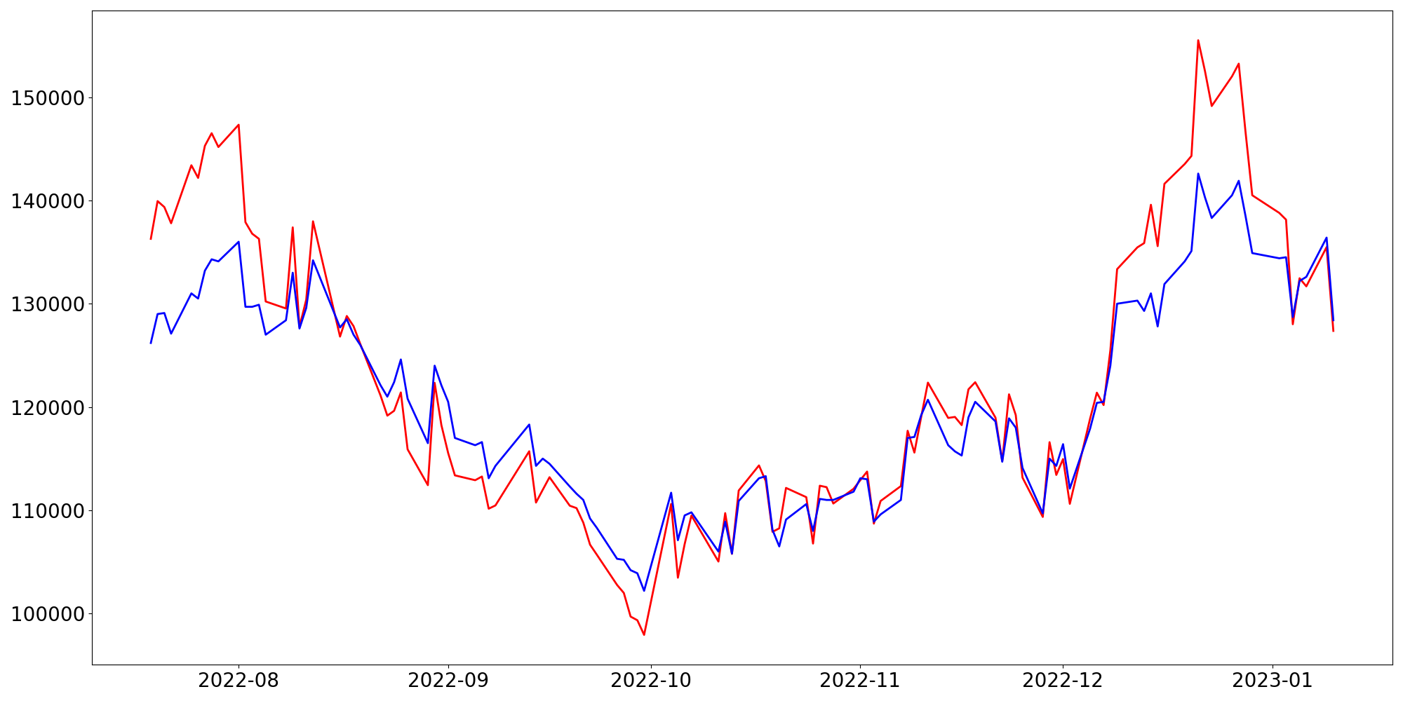 [ - : 실제값(종가) / - : 예측값(종가) ]