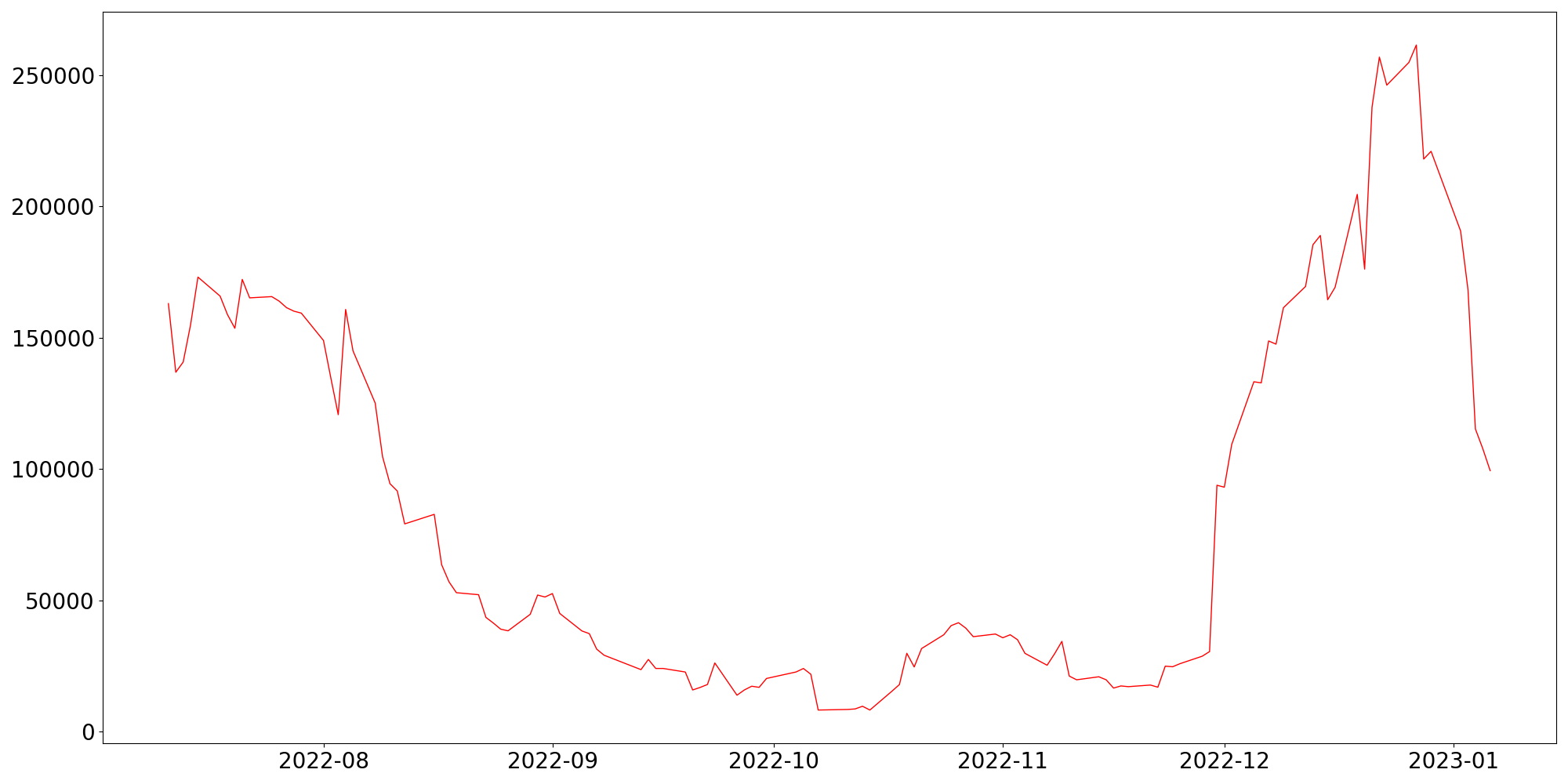 [ - : 실제값(종가) / - : 예측값(종가) ]