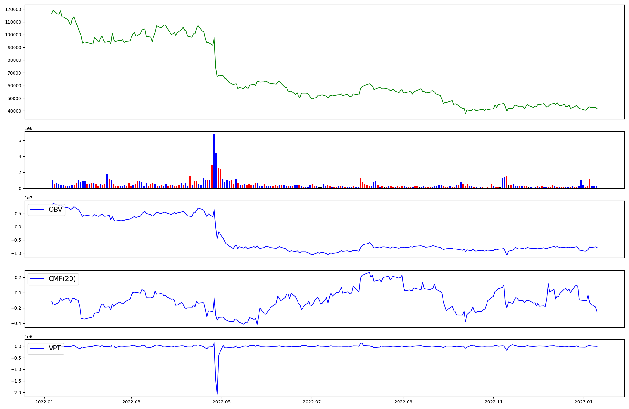 | OBV | CMF | VPT | |