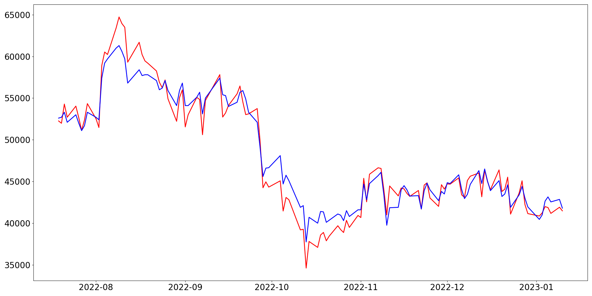 [ - : 실제값(종가) / - : 예측값(종가) ]