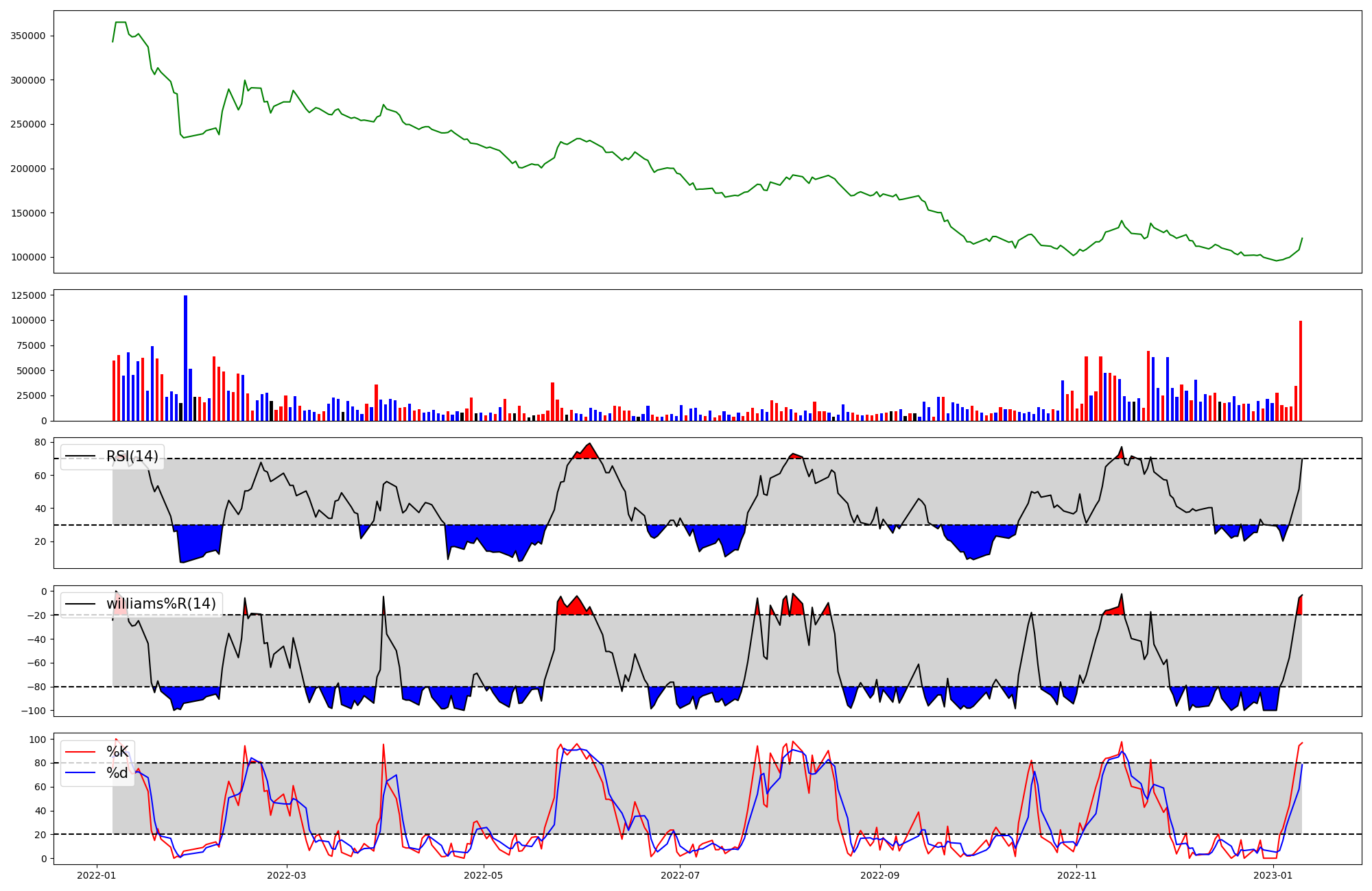| RSI | Williams %R | stochastic(%K) | |