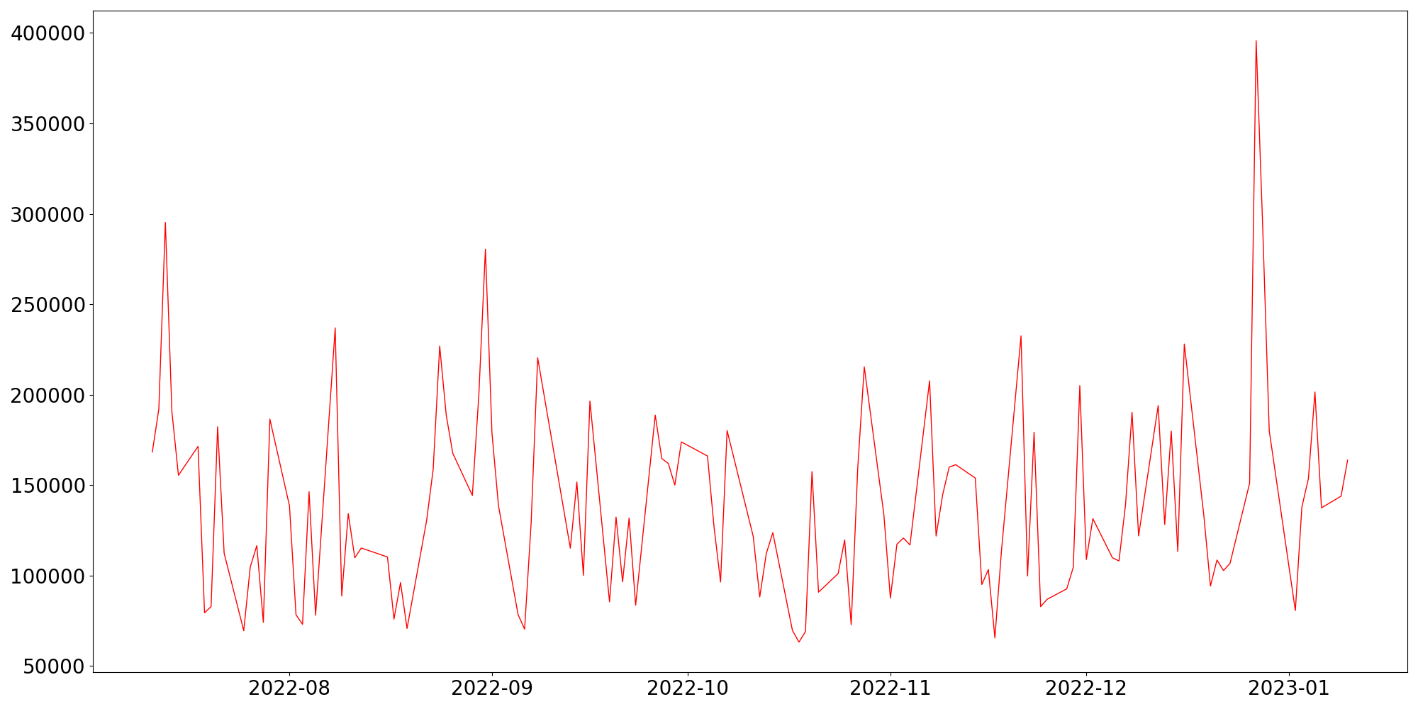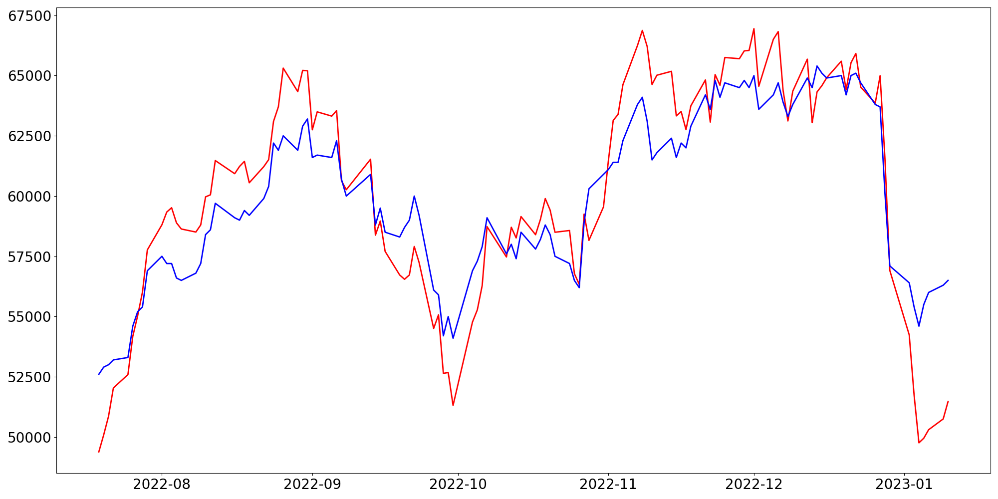 [ - : 실제값(종가) / - : 예측값(종가) ]