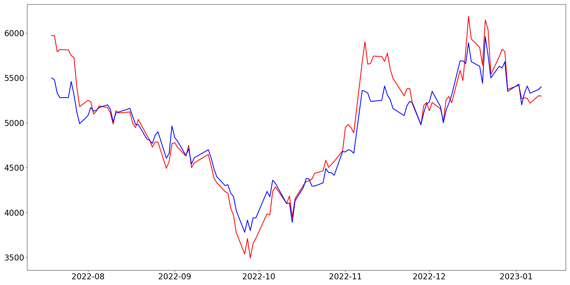 [ - : 실제값(종가) / - : 예측값(종가) ]