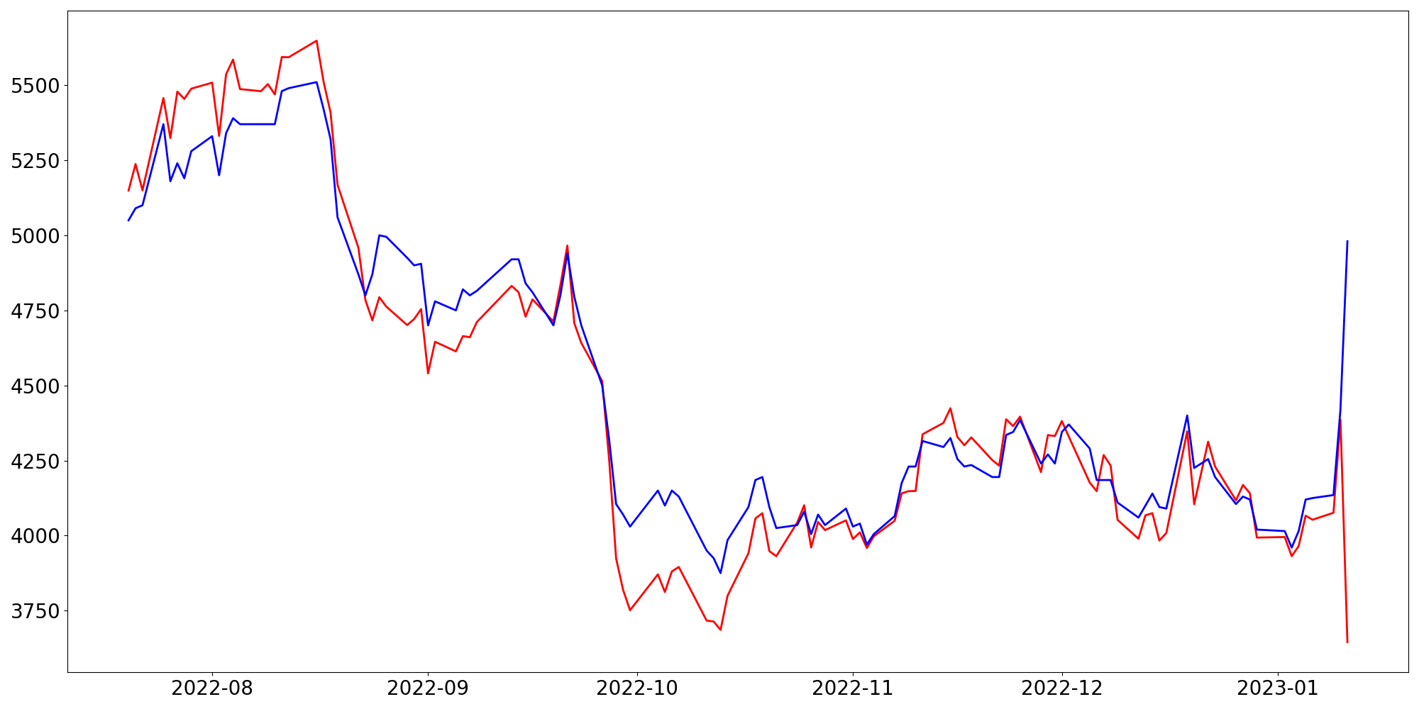 [ - : 실제값(종가) / - : 예측값(종가) ]