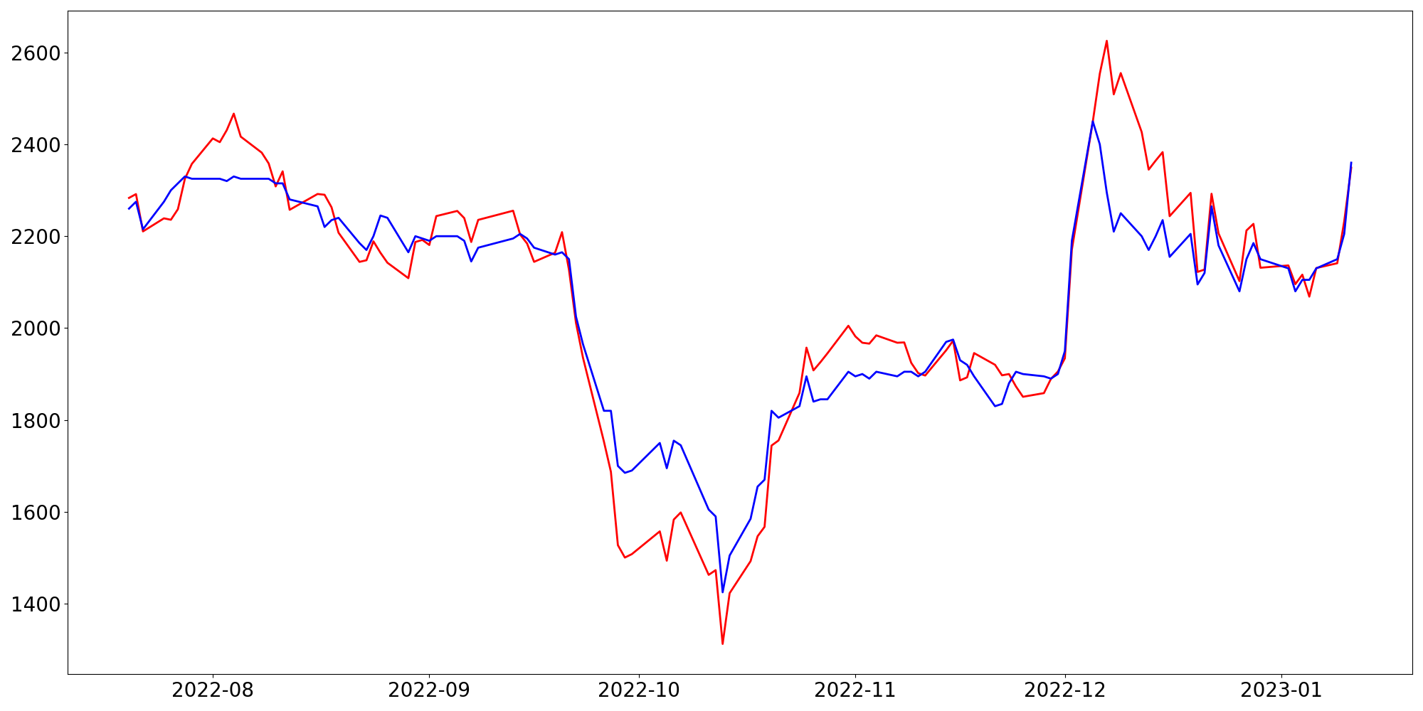 [ - : 실제값(종가) / - : 예측값(종가) ]