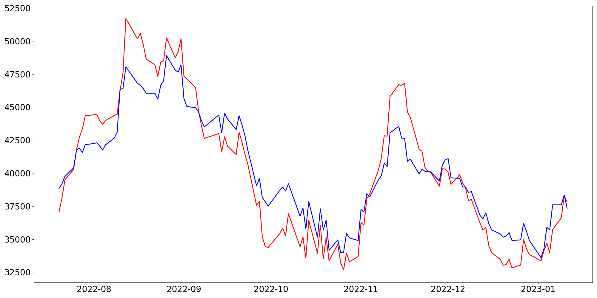 [ - : 실제값(종가) / - : 예측값(종가) ]