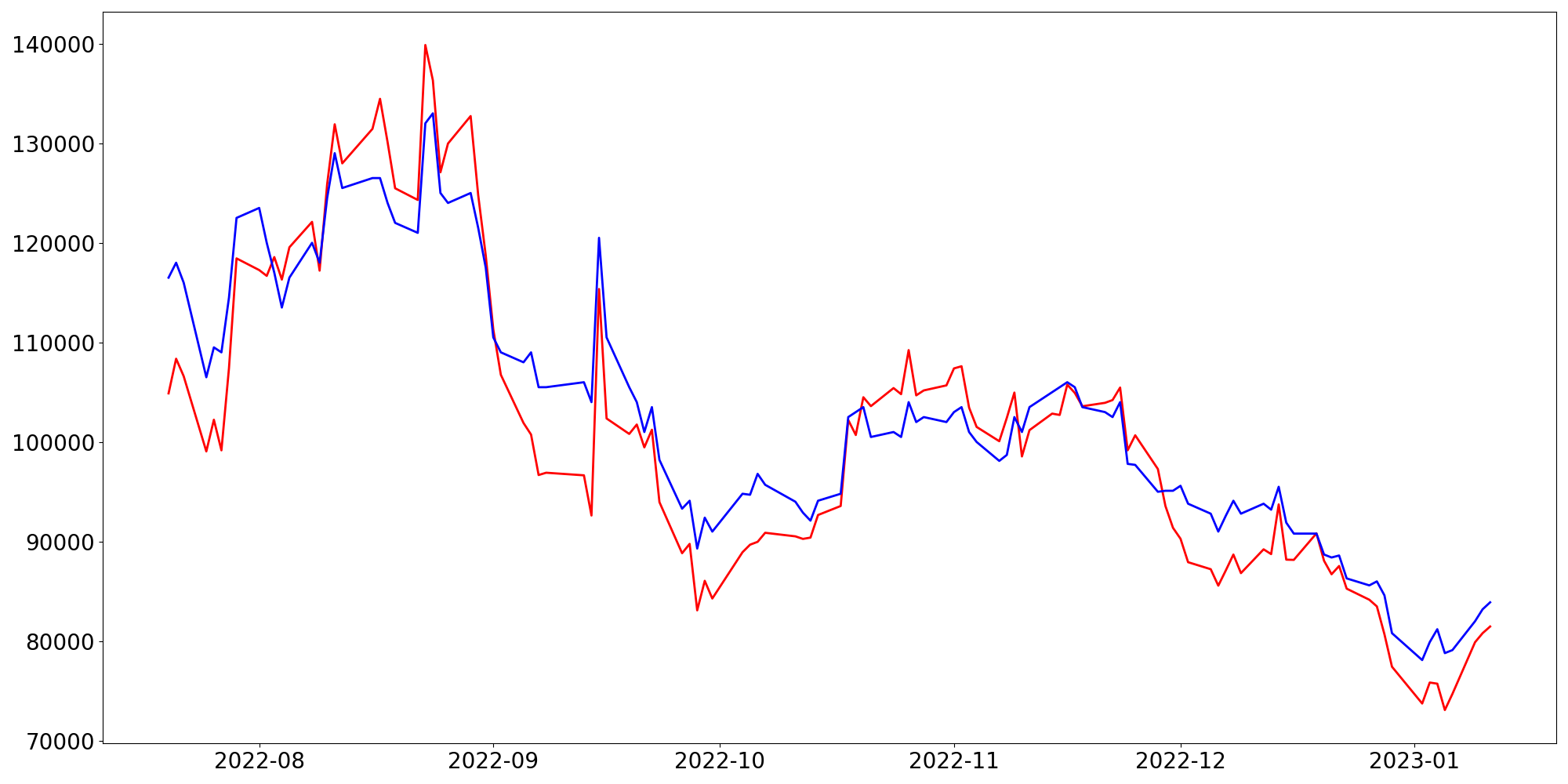 [ - : 실제값(종가) / - : 예측값(종가) ]