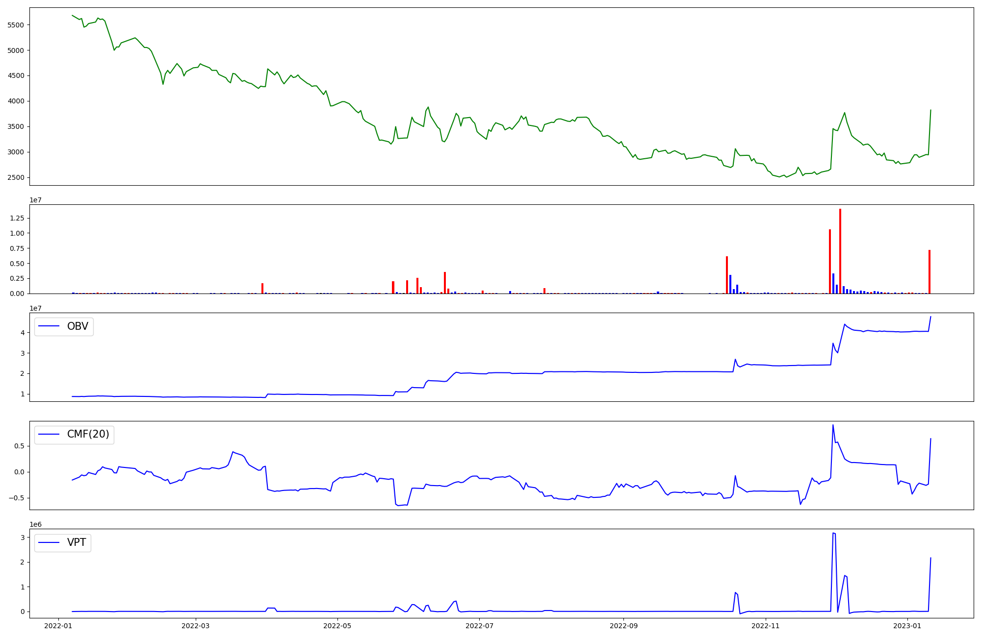 | OBV | CMF | VPT | |