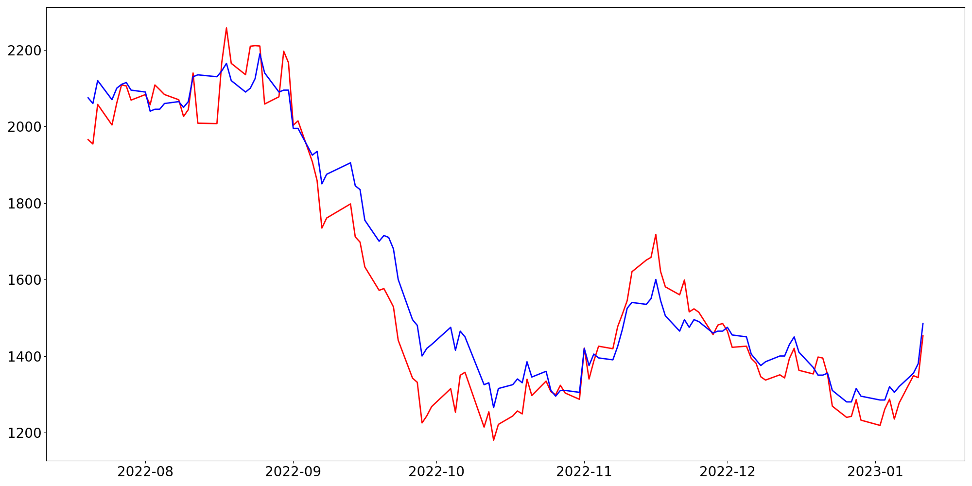 [ - : 실제값(종가) / - : 예측값(종가) ]