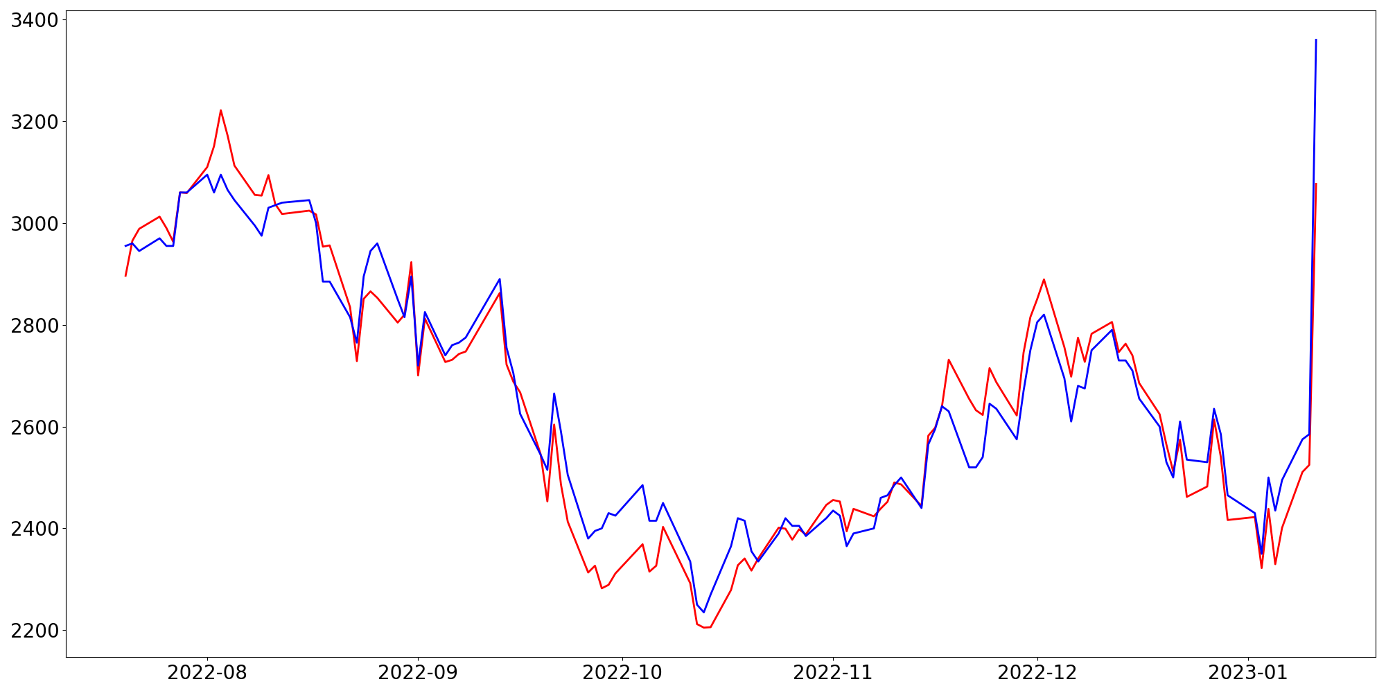 [ - : 실제값(종가) / - : 예측값(종가) ]