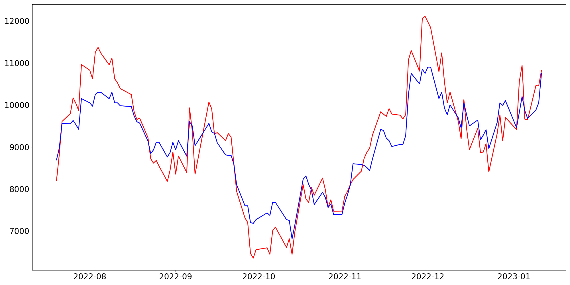 [ - : 실제값(종가) / - : 예측값(종가) ]