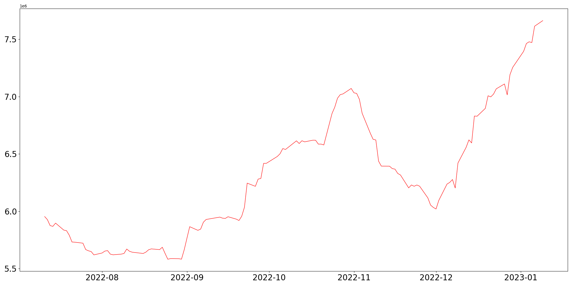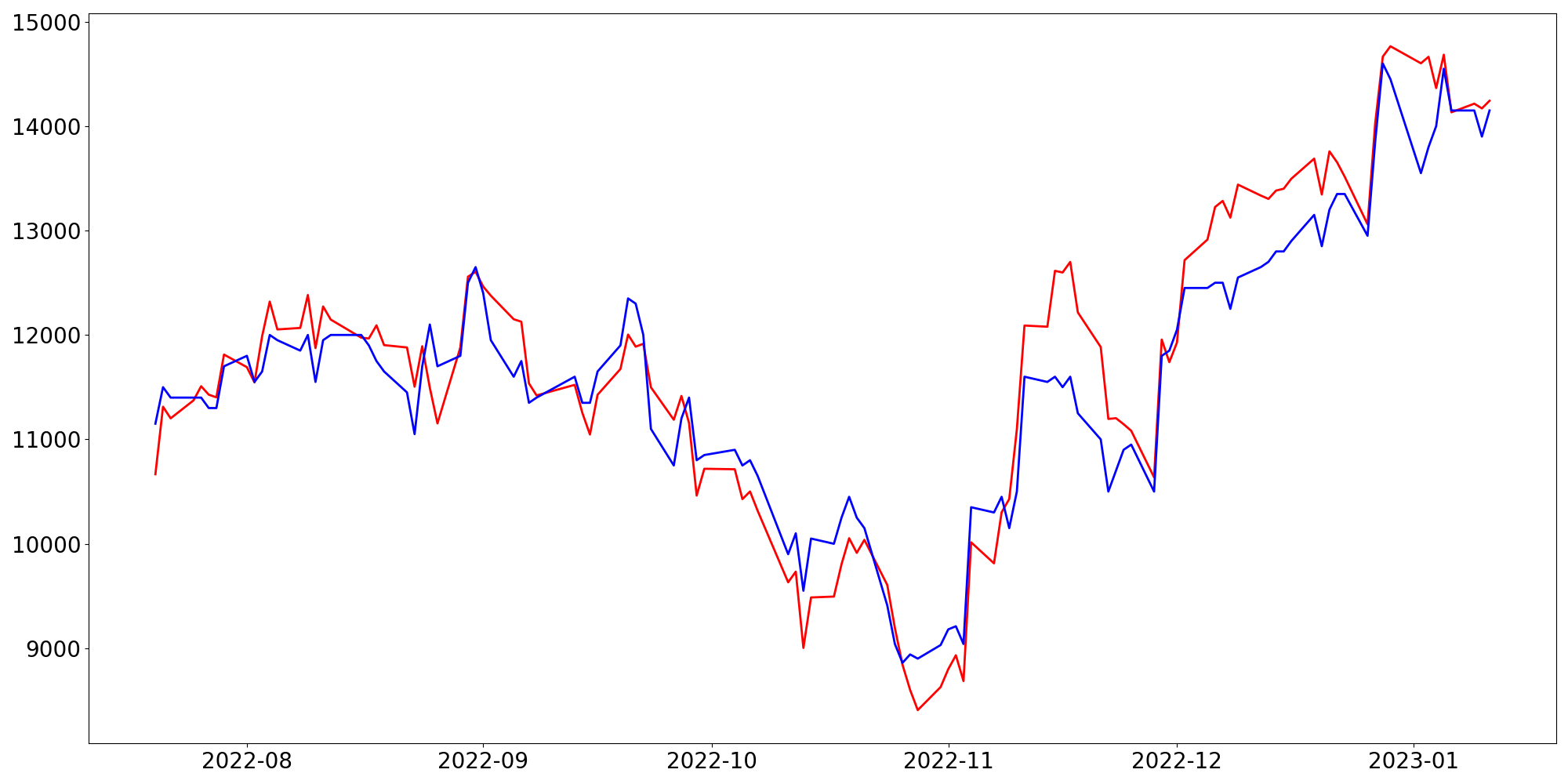 [ - : 실제값(종가) / - : 예측값(종가) ]