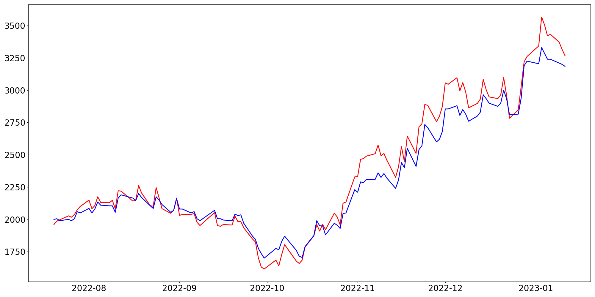 [ - : 실제값(종가) / - : 예측값(종가) ]