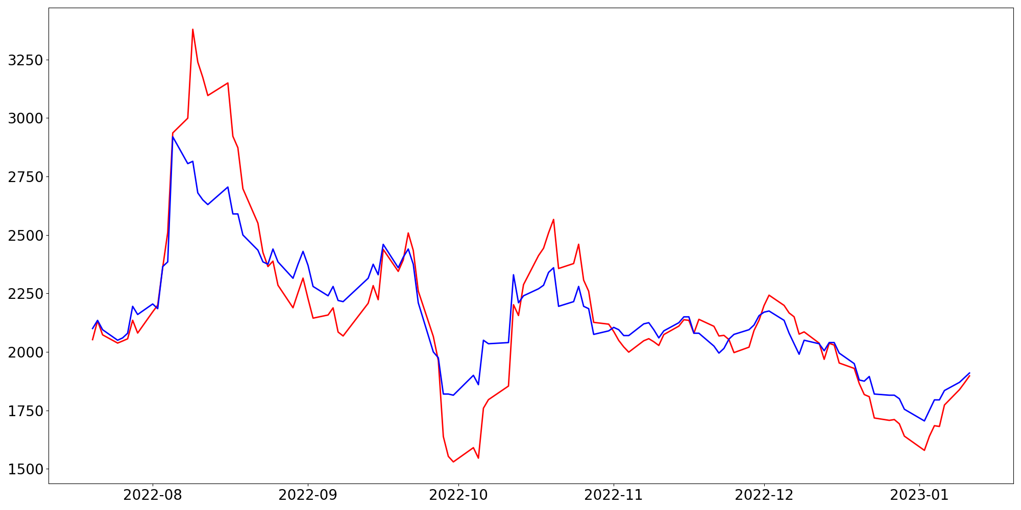[ - : 실제값(종가) / - : 예측값(종가) ]