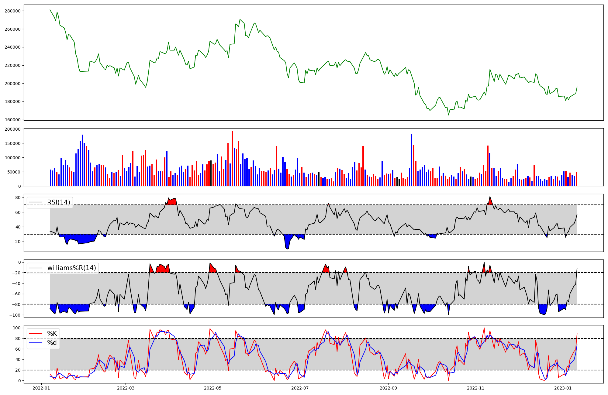 | RSI | Williams %R | stochastic(%K) | |