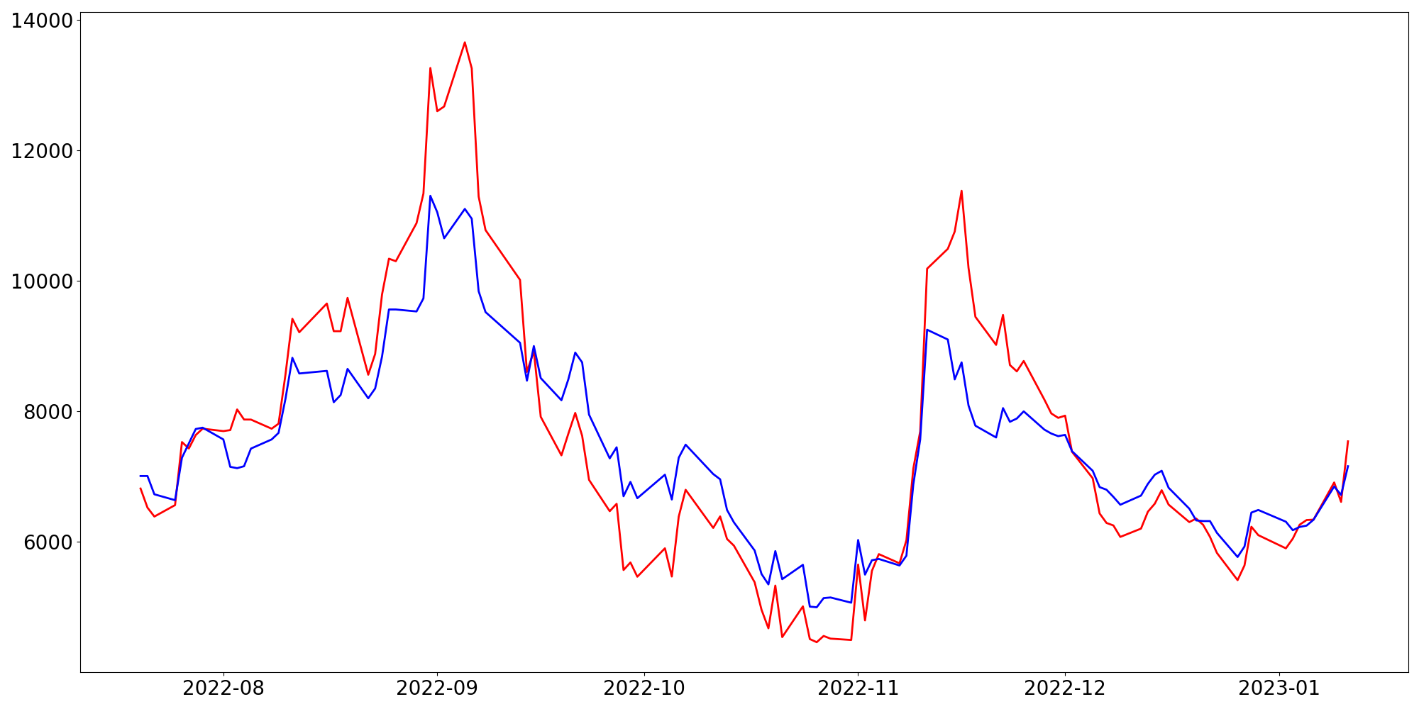 [ - : 실제값(종가) / - : 예측값(종가) ]