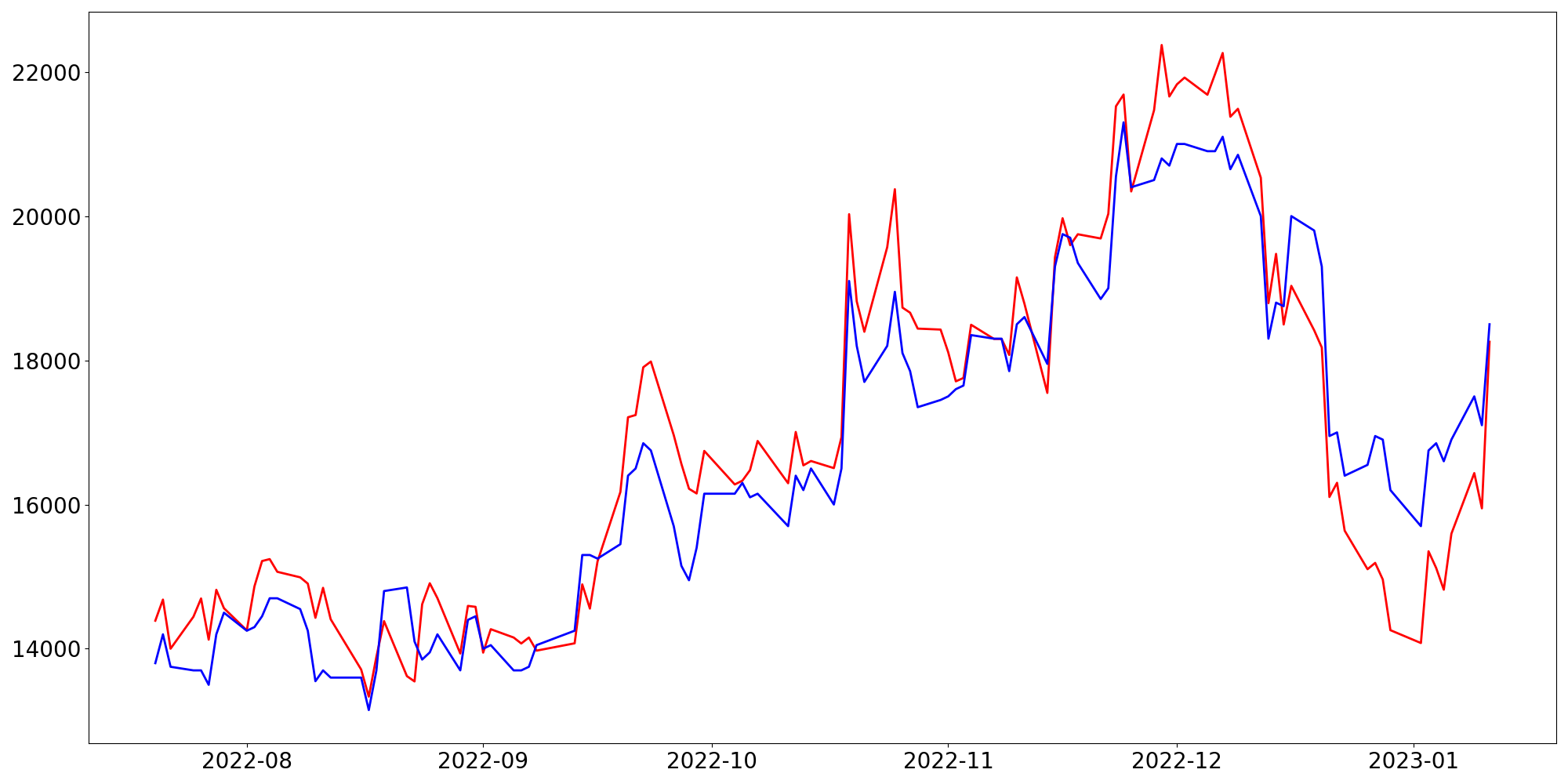 [ - : 실제값(종가) / - : 예측값(종가) ]