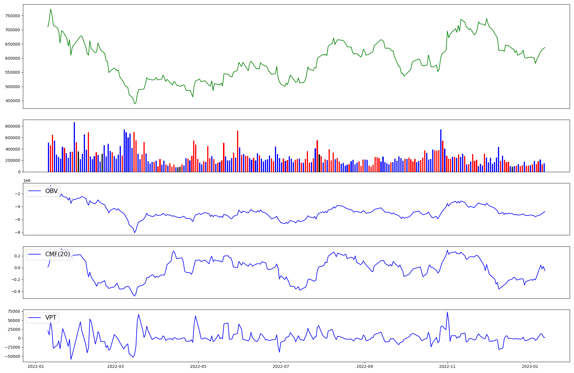 | OBV | CMF | VPT | |