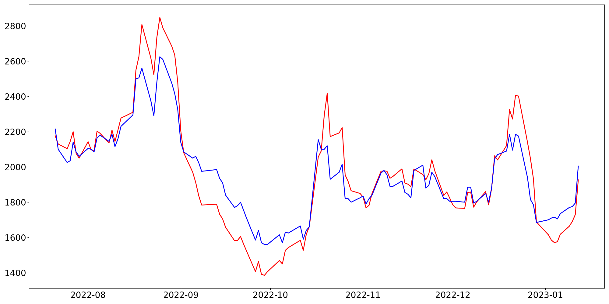 [ - : 실제값(종가) / - : 예측값(종가) ]