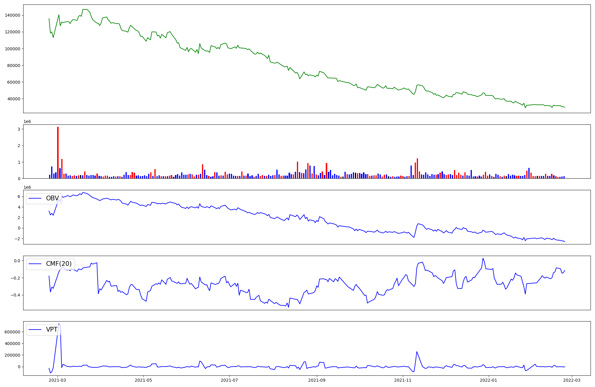 | OBV | CMF | VPT | |