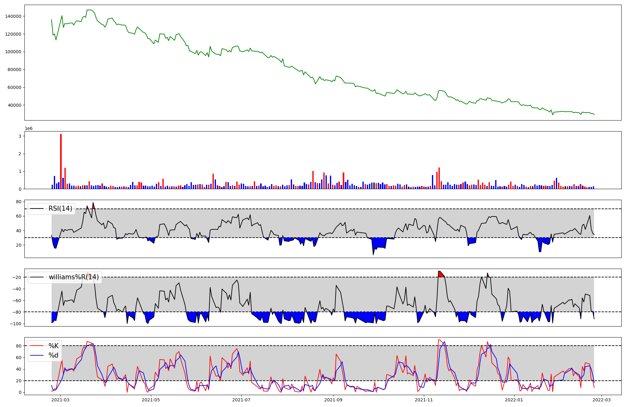 | RSI | Williams %R | stochastic(%K) | |