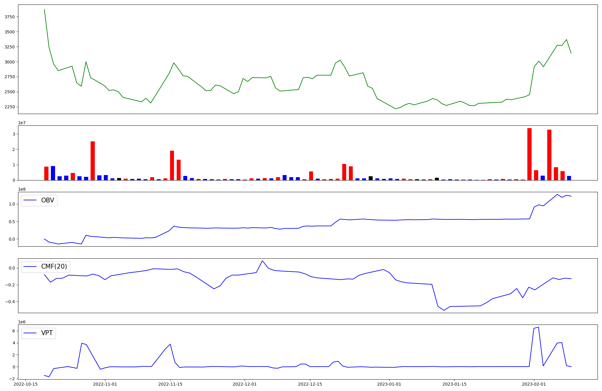 | OBV | CMF | VPT | |